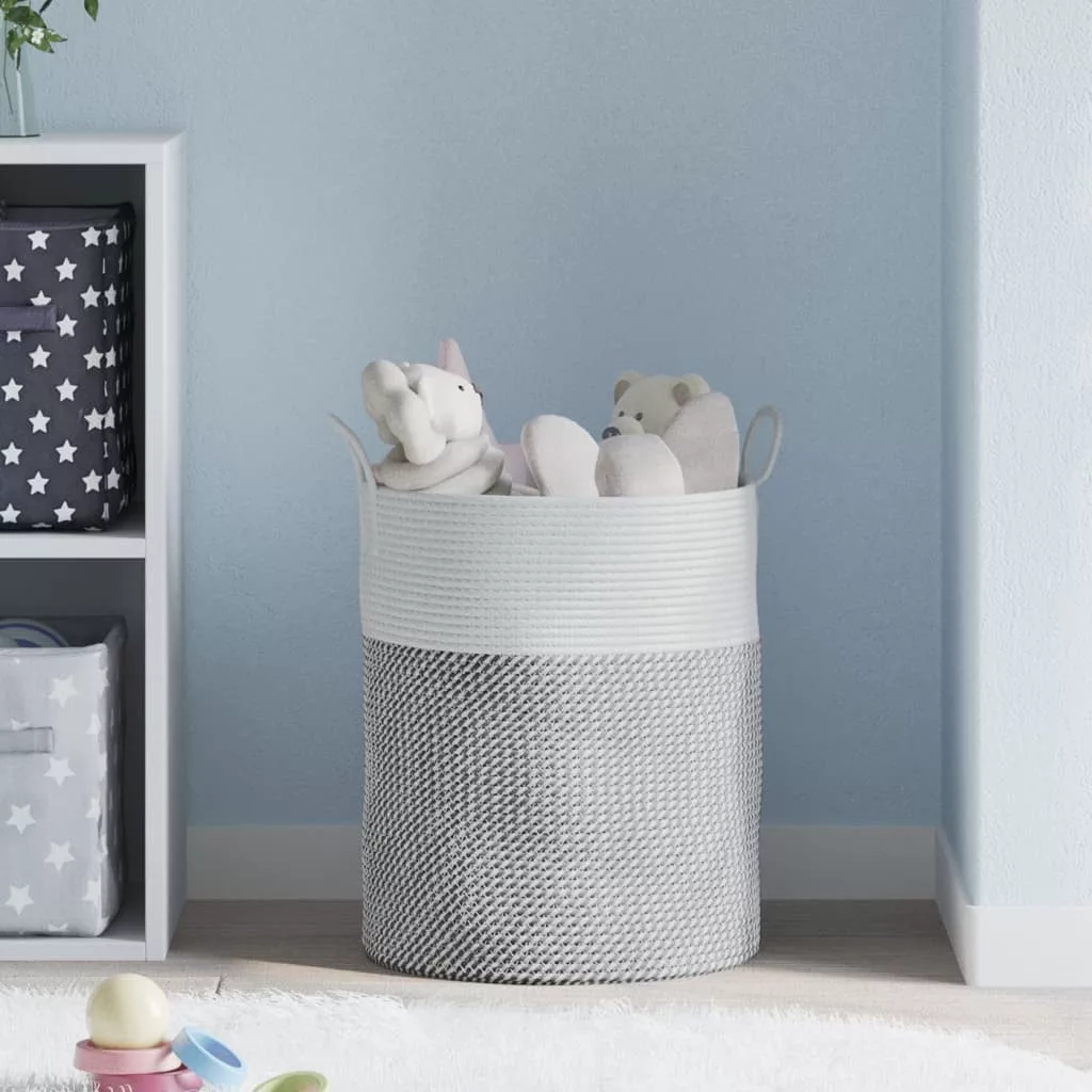 szürke és fehér pamut tárolókosár Ø38 x 46 cm
