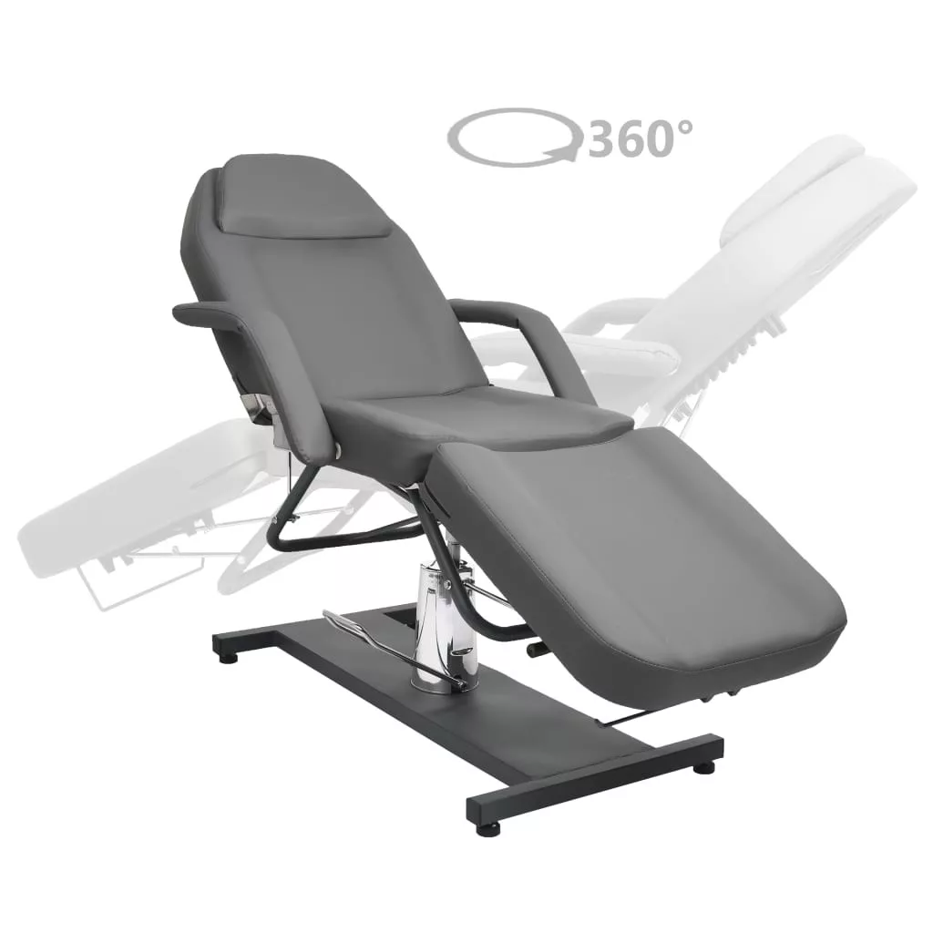 A masszázsasztal kozmetikai kezelések széles skálájához is használható. A kozmetikai ágy vastag hablábbal és kényelmes PVC-anyaggal borított ülő- és hátpárnákkal rendelkezik a hosszú élettartam érdekében. Könnyű kialakítása biztosítja az ágy kényelmét és teljes rugalmasságát. A vas talp nagy stabilitást biztosít az ágynak. Gázemelő mechanizmussal és kivehető kartámasszal, illetve állítható háttámlával és lábtartóval is rendelkezik. A kezelőasztal 360 fokban elforgatható. Ez a masszázsasztal valóban sokoldalú. Ideális arckezeléshez, bőrápoláshoz, masszázshoz, tetováláshoz vagy piercinghez. Maximum 110 kg ülésenként. Ügyeljen a nyílt tűz és más erős hőforrások veszélyére a termék közelében.