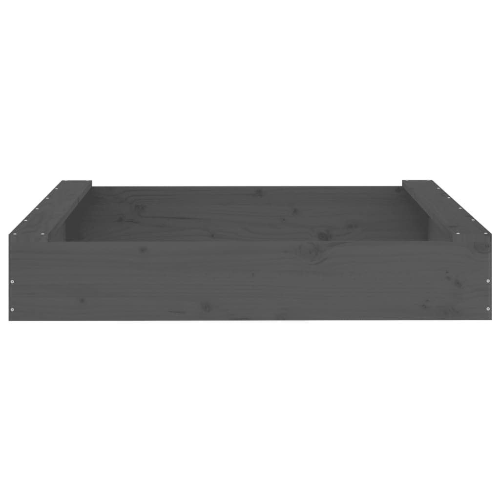 szürke négyszög alakú tömör fenyőfa homokozó ülésekkel