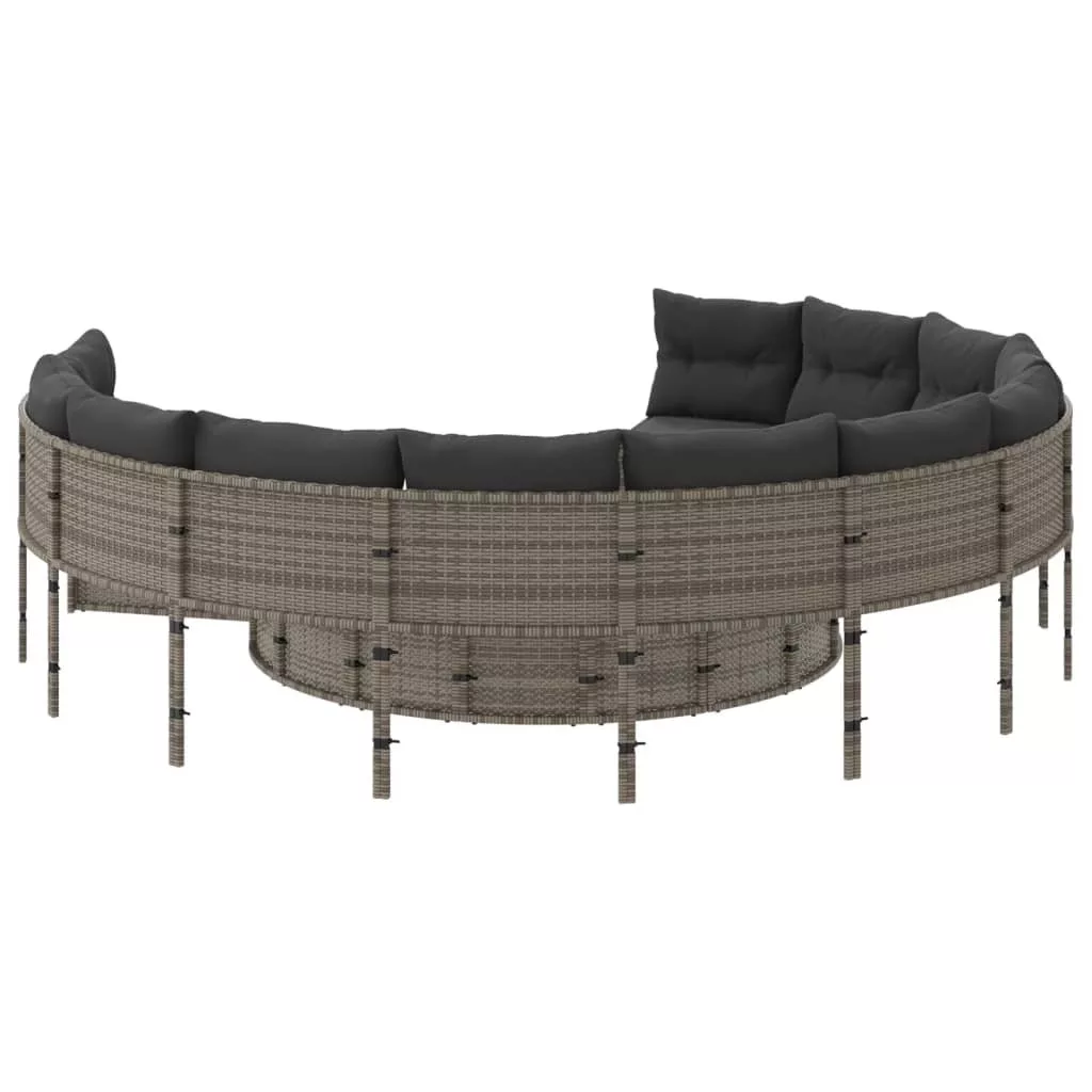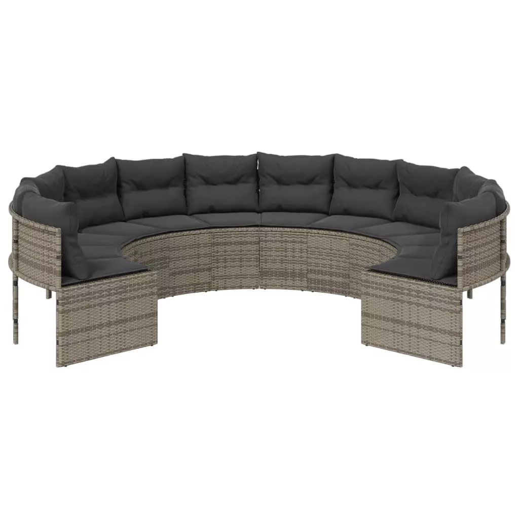Ez a kerek kerti kanapé kertje, terasza vagy udvara tökéletes kiegészítője lesz, kényelmes és hívogató teret biztosítva a családdal és a barátokkal való csevegéshez, vagy egyszerűen csak a pihenéshez a szabadban.í Tartós anyag: A PE rattan, más néven polyrattan, egy erős, kevés karbantartást igénylő szintetikus anyag, amely úgy néz ki, mint a természetes rattan. Könnyű, könnyen tisztítható, tartóssága és időjárásálló tulajdonságai miatt gyakran használják kültéri bútorok készítéséhez.Kényelmes ülőélmény: Ez a vastagon bélelt párnákkal kiegészített kültéri bútor kényelmes ülőélményt kínál.Levehető és mosható huzat: Ezek az ülőpárnák levehető huzattal rendelkeznek az egyszerű mosás és karbantartás érdekében.Robusztus és stabil váz: A porszórt acél váz biztosítja, hogy a kerti bútor erős és stabil legyen a mindennapi kültéri használathoz. Jó tudni:A kültéri bútor szépségének megőrzése érdekében javasoljuk, hogy vízálló huzattal fedje be. Maksimális 110 kg ülésenként. Legyen tudatában a nyílt tűz és más erős hőforrások kockázatának a termék környezetében.