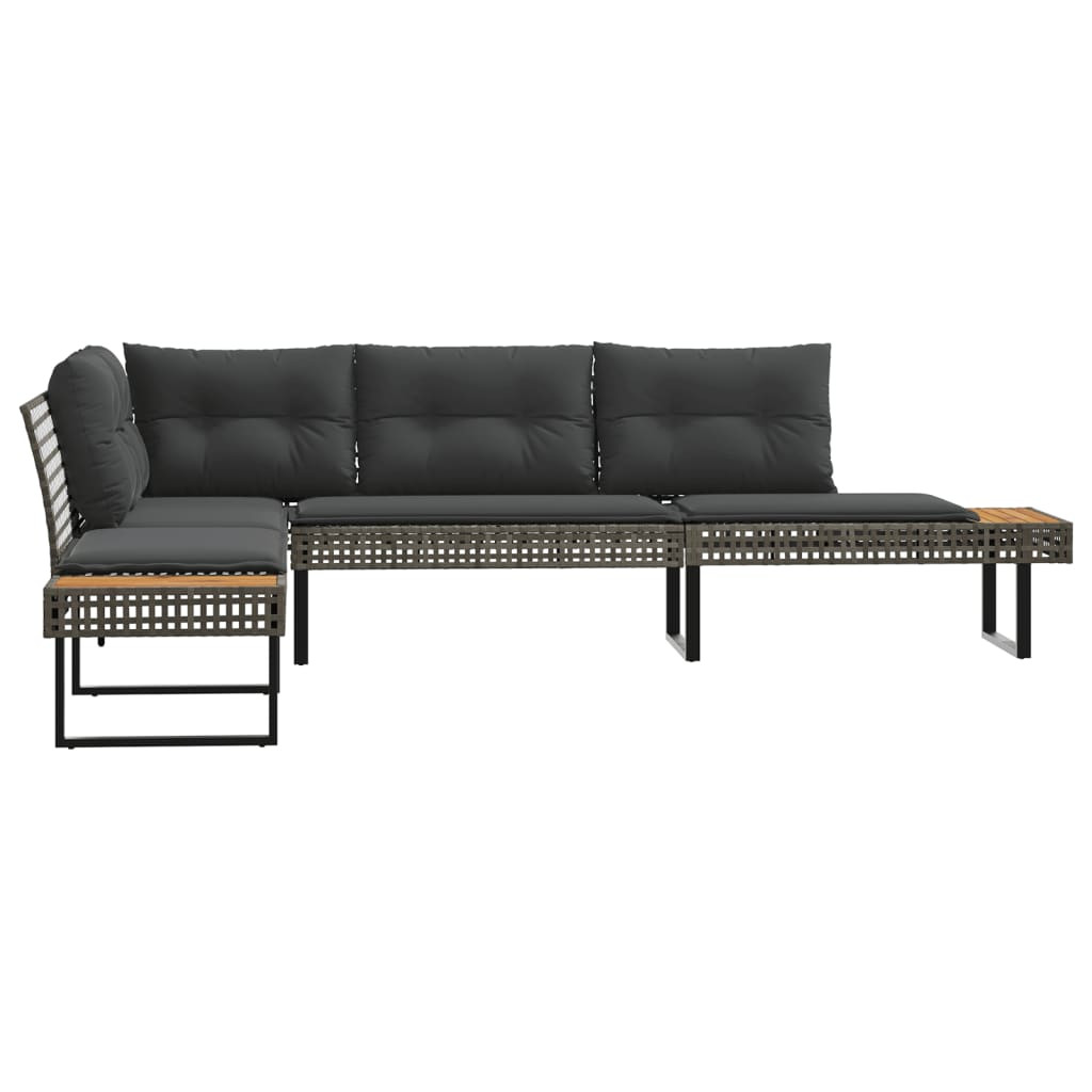 szürke polyrattan és akácfa L-alakú kerti kanapé párnával