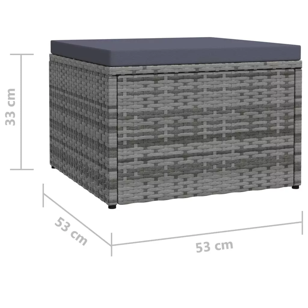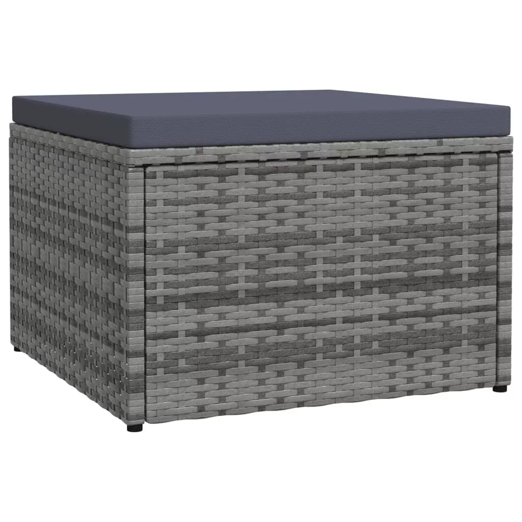 szürke polyrattan kerti lábzsámoly párnával