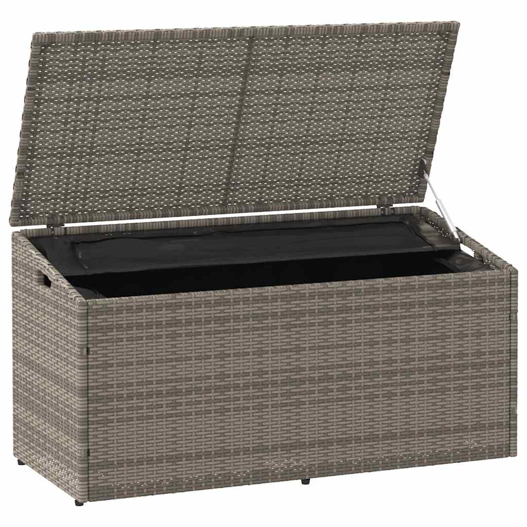 szürke polyrattan kerti tárolóláda 110x50x58 cm