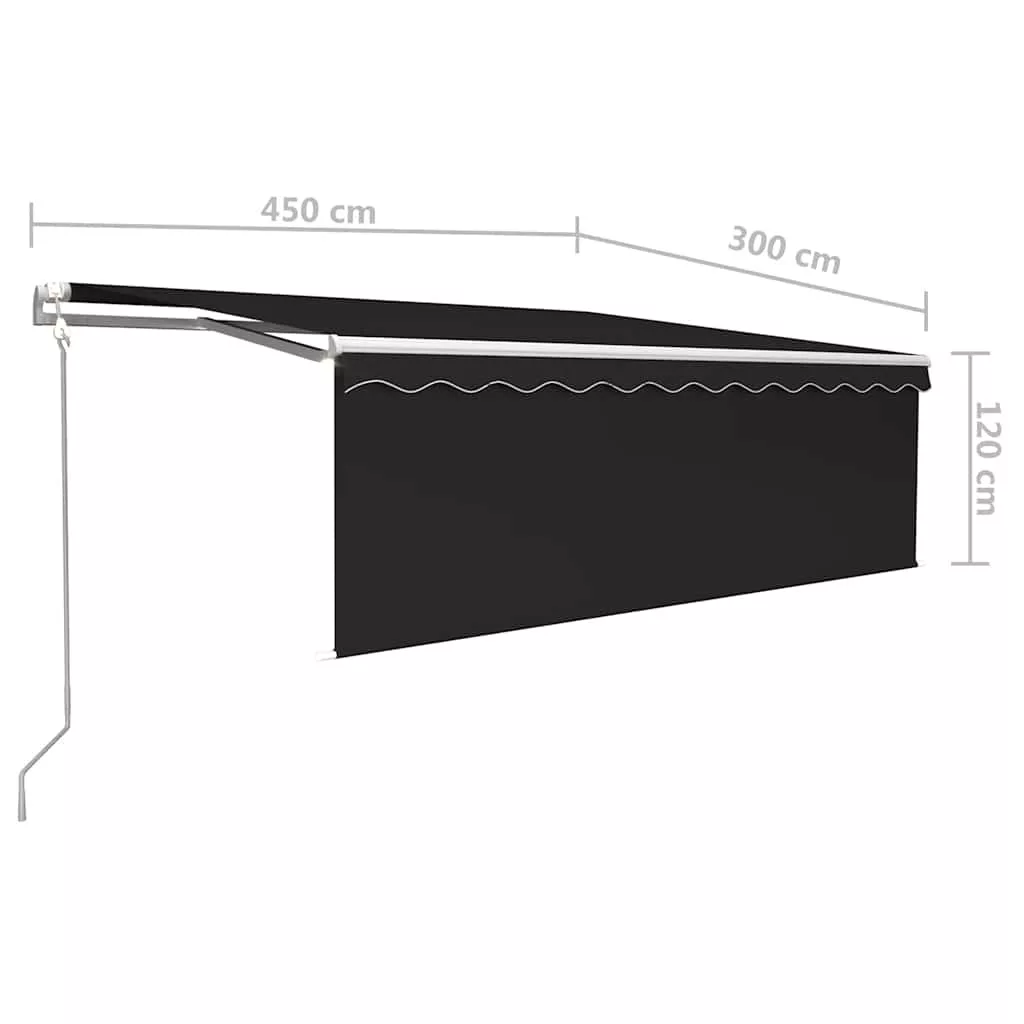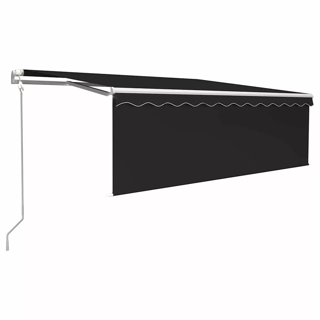 Teremtsen kellemes és hűvös helyet kültéri tereiben ezzel a visszahúzható napellenzővel! A rozsdaálló, porszórt alumíniumváznak köszönhetően a kültéri napellenző könnyű, mégis erős. Az udvari napellenző szövetanyaga nagy sűrűségű, PU-bevonatú poliészterből készült, mely UV- és vízálló. A szög és a magasság az Ön igényei szerint állítható. A napellenző a mellékelt távirányítóval egyszerűen nyitható és visszahúzható, valamint a hosszú hajtókarral is zökkenőmentesen használható. Ráadásul a szélérzékelő szeles napokon automatikusan behúzza a napellenzőt, a LED-lámpák pedig éjjel energiatakarékos világítást nyújtanak. A redőny megvédi az UV-sugaraktól és védi a privát szféráját.