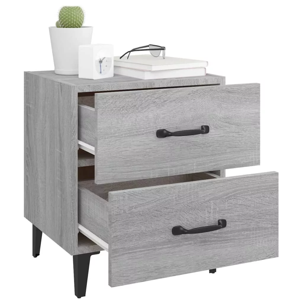 Csempésszen egy csipetnyi ipari bájt otthonába ezzel az éjjeliszekrénnyel. Prémium minőségű anyag: A szerelt fa kivételes minőségű, sima felületű, szilárd, stabil és ellenáll a nedvességnek.Masszív lábak: A fém lábak elbűvölő ipari stílust csempésznek otthonába, és a stabilitásról is gondoskodnak. Bőséges tárolóhely: Az éjjeliszekrény két, fém fogantyúval ellátott fiókkal rendelkezik. A tágas fiókokban rendezetten tarthatja holmiját. Masszív felső lap: Az ágy melletti éjjeliszekrény masszív lapja ideális dísztárgyak, képkeretek vagy cserepes növények elhelyezésére.