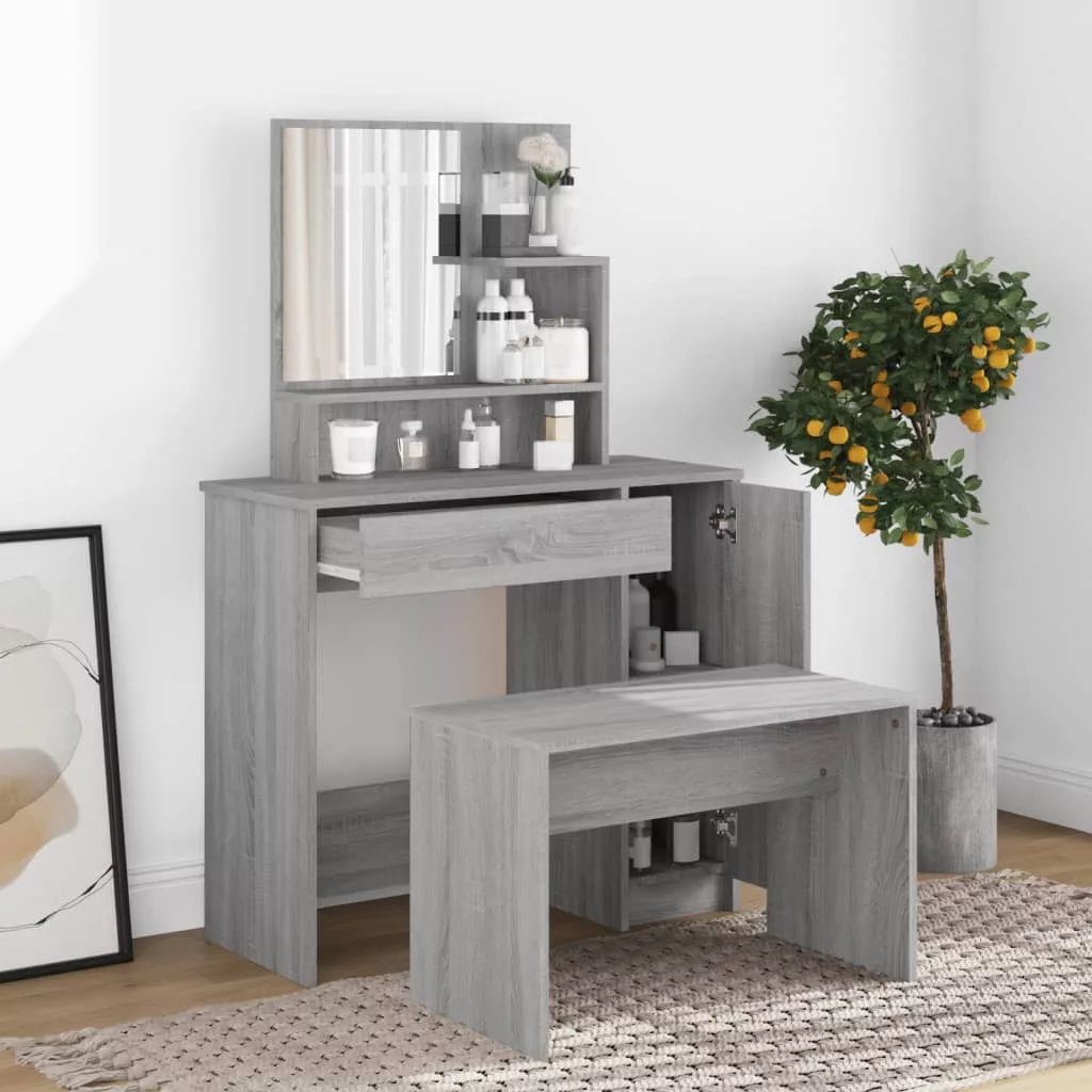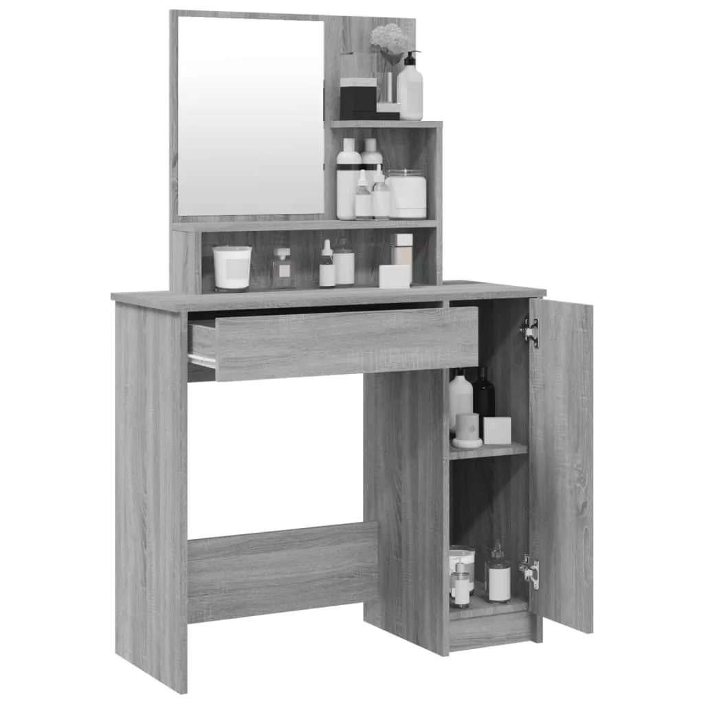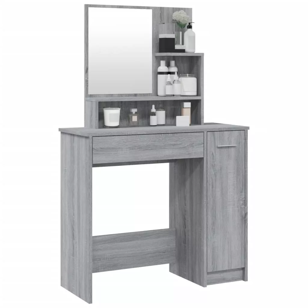 szürke sonoma színű fésülködőasztal tükörrel 86,5 x 35 x 136 cm
