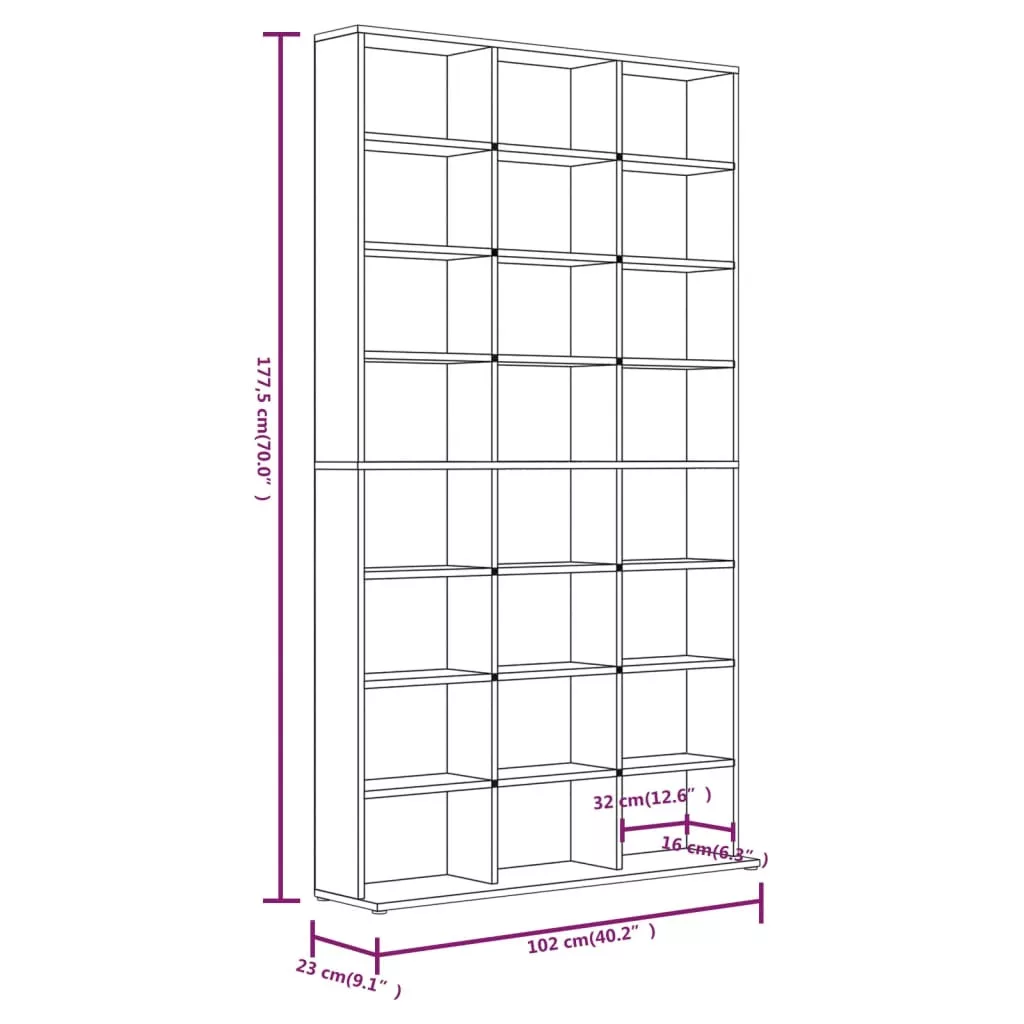 szürke sonoma színű szerelt fa CD-szekrény 102 x 23 x 177,5 cm