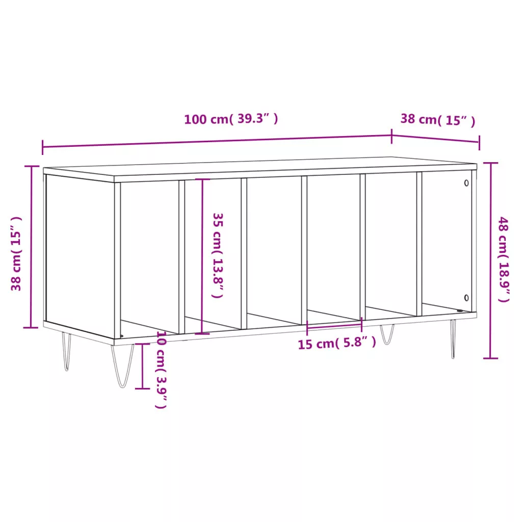szürke sonoma színű szerelt fa hanglemezszekrény 100x38x48 cm