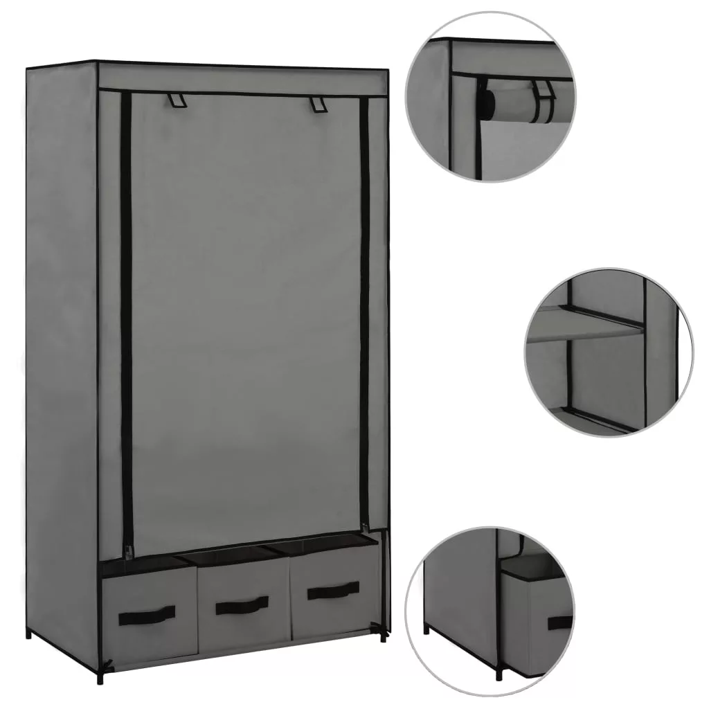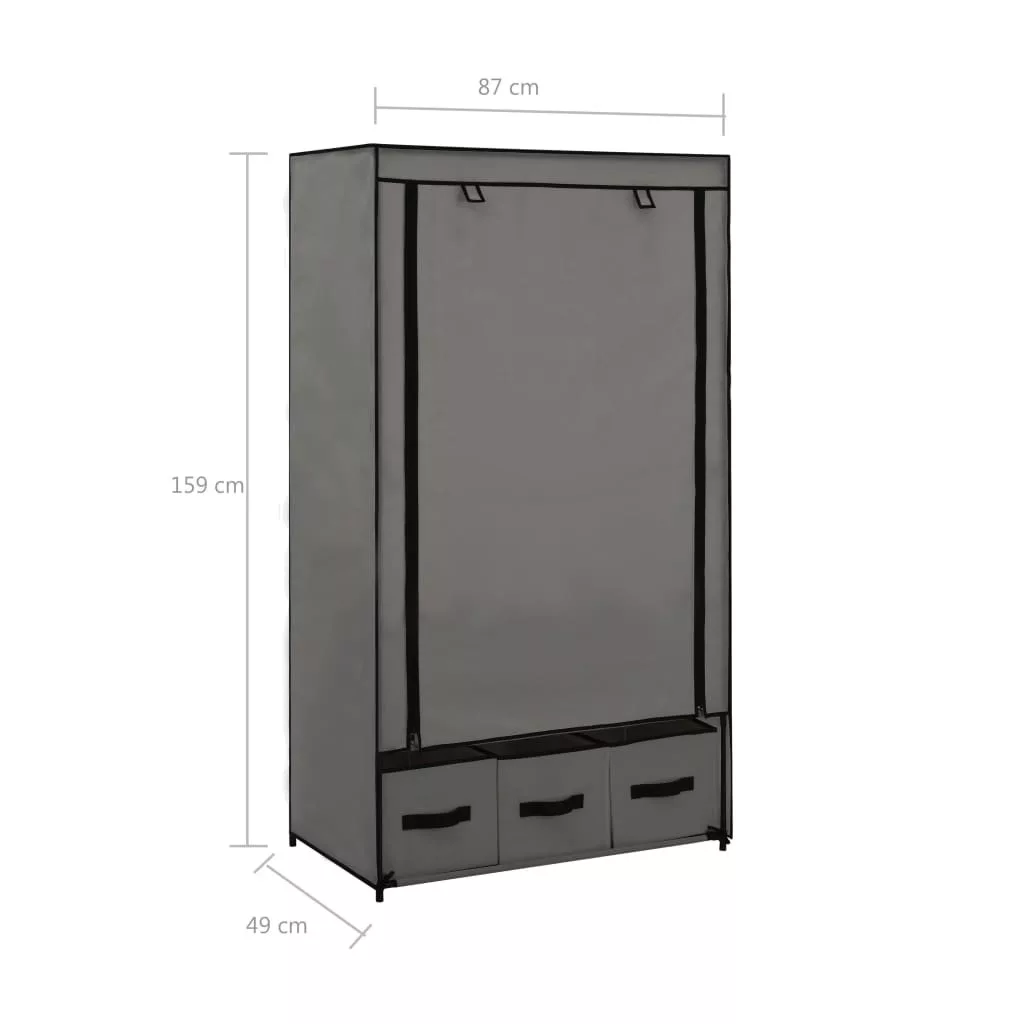 szürke szövet ruhásszekrény 87 x 49 x 159 cm
