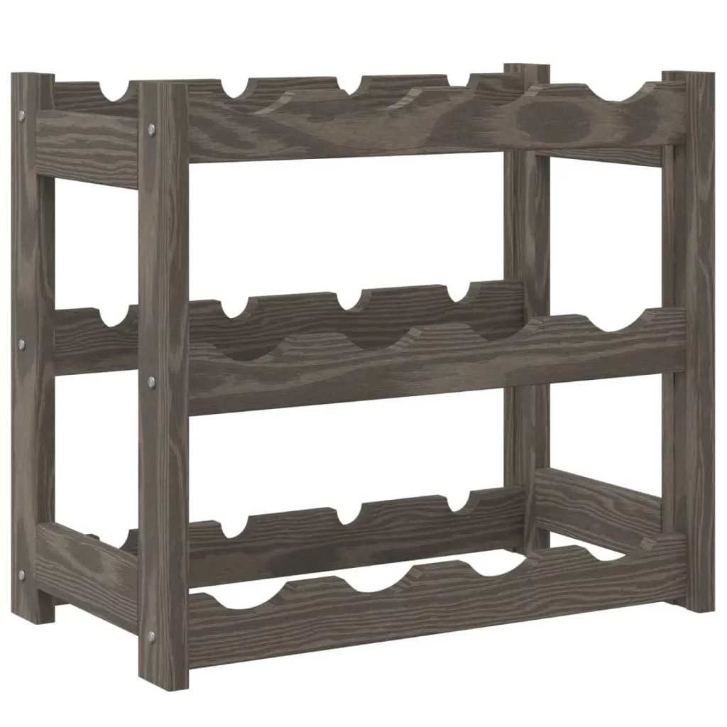 szürke tömör fenyőfa bortartó 12 palackhoz