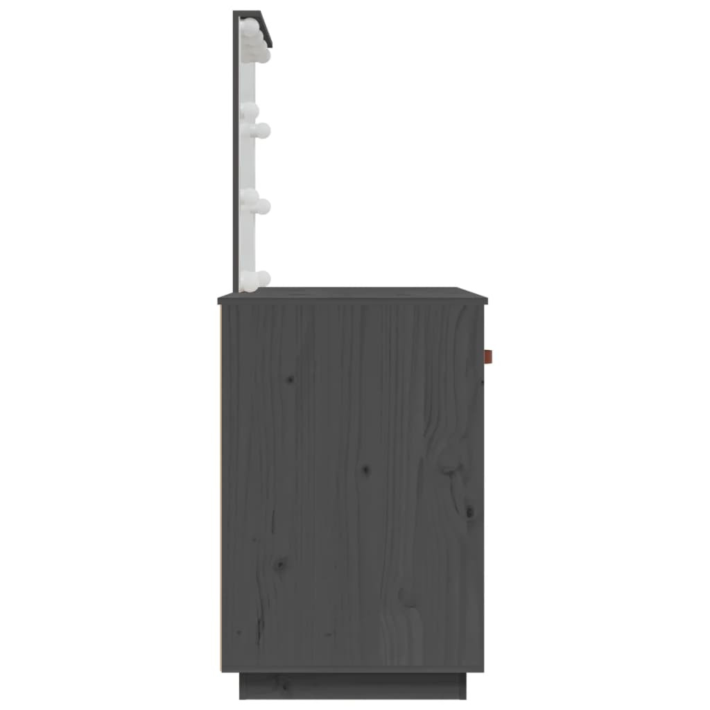 szürke tömör fenyőfa fésülködőasztal LED-del 95 x 50 x 133,5 cm
