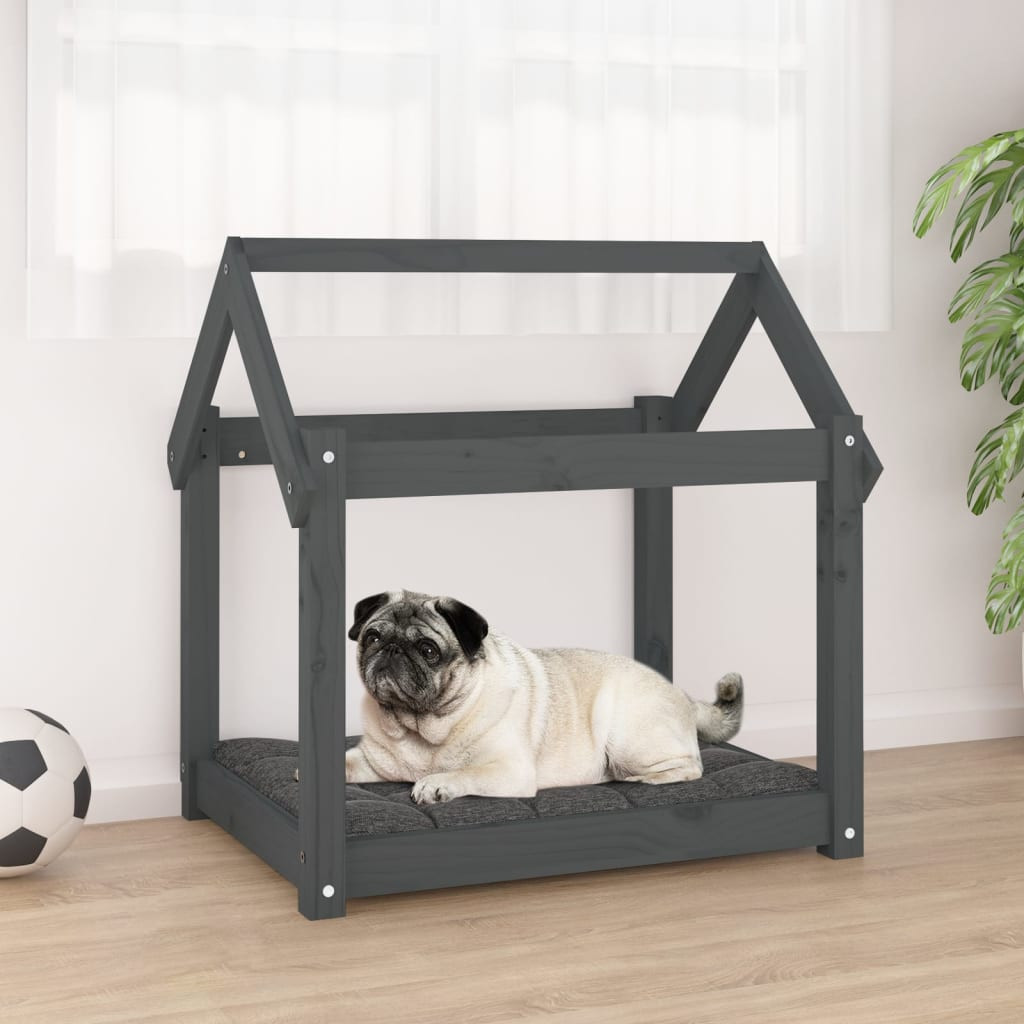 szürke tömör fenyőfa kutyaágy 71x55x70 cm
