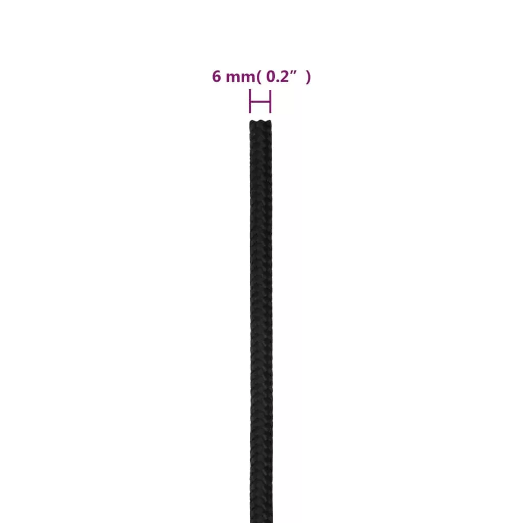 teljesen fekete polipropilén hajókötél 6 mm 25 m