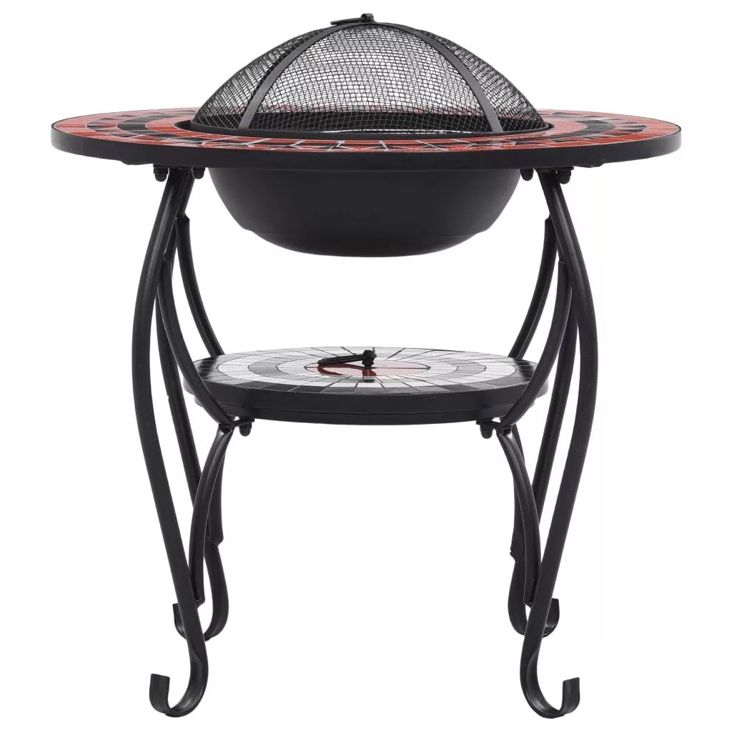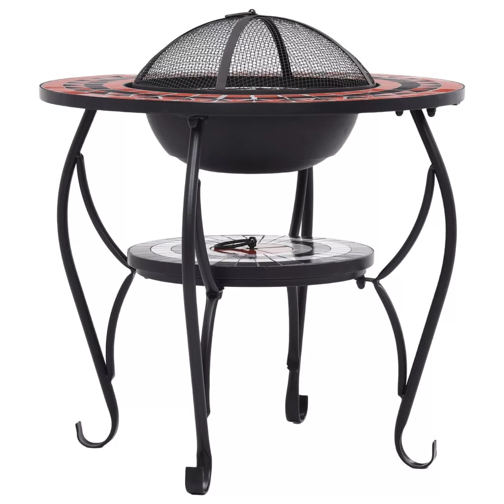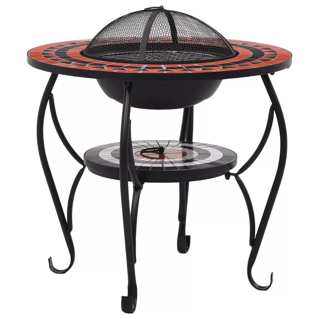 terrakotta és fehér kerámia mozaik tűztál asztallal 68 cm