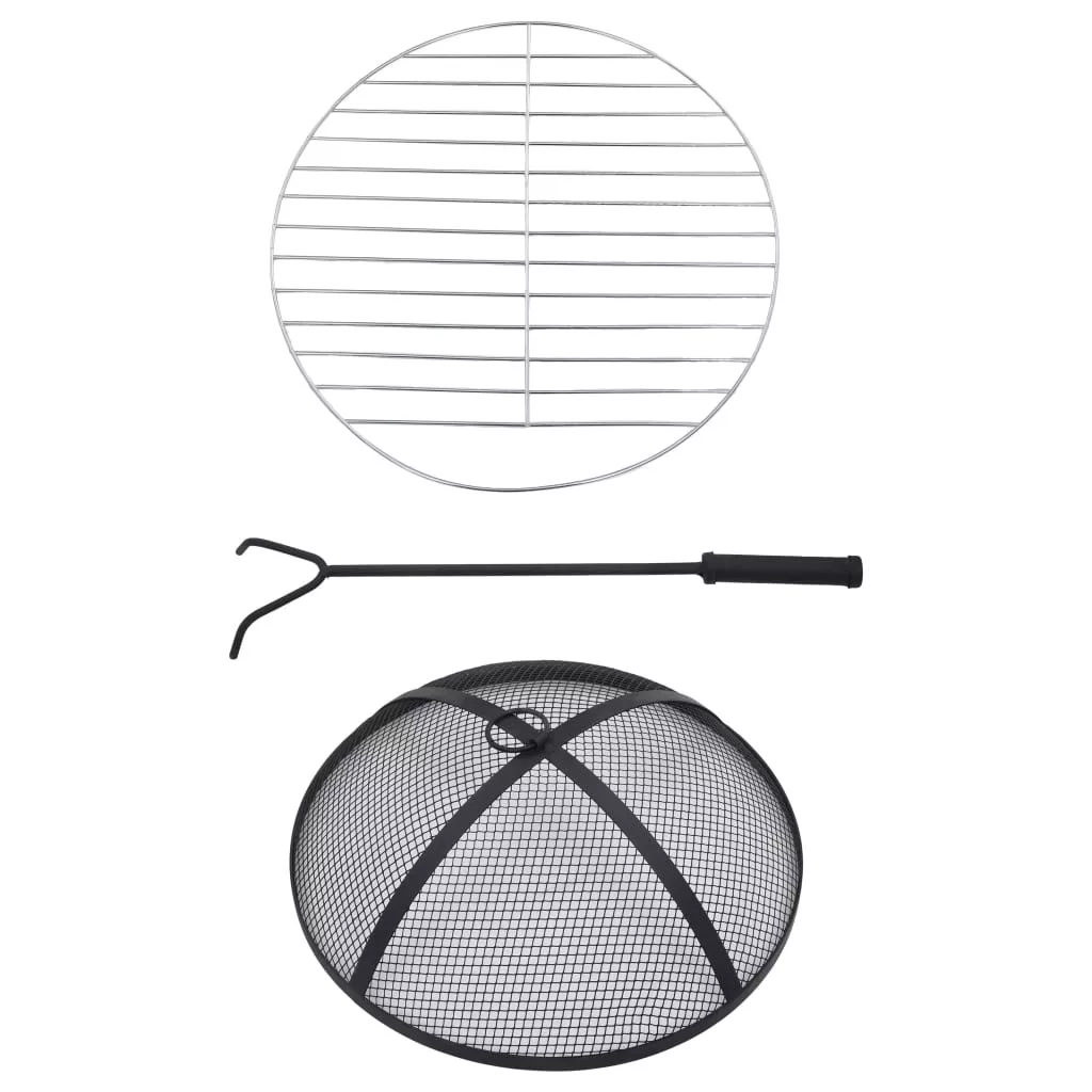 Ez a tűzrakóhely dekoratív és hangulatos kiegészítője lesz kertjének vagy terasza berendezésének, miközben melegen tartja esténként, amikor hidegebb lesz. Az acélból készült tűztál kiválóan nyeli el és sugározza a hőt. Száraz fa, rönk vagy faszén égetésére használható. A tűztálat egy négylábú állvány támasztja alá. A mellékelt biztonsági háló lehetővé teszi az égő tűz megfigyelését, elzárja a tüzet a biztonság érdekében, és megakadályozza a szikrák és a törmelék kirepülését. A mellékelt piszkavassal a hálós fedelet leveheti, illetve átrendezheti a rönköket és a szenet. Ezenkívül a tűzrakó asztal grillezőként is használható. Kerámia felülete tökéletes helyet kínál italok és sütnivalók tárolására. Kérjük, vegye figyelembe, hogy a termék nem alkalmas arra, hogy hideg időjárás esetén kint hagyja. FIGYELEM! Ne használja beltérben! Tartsa távol a gyermekeket és a háziállatokat.