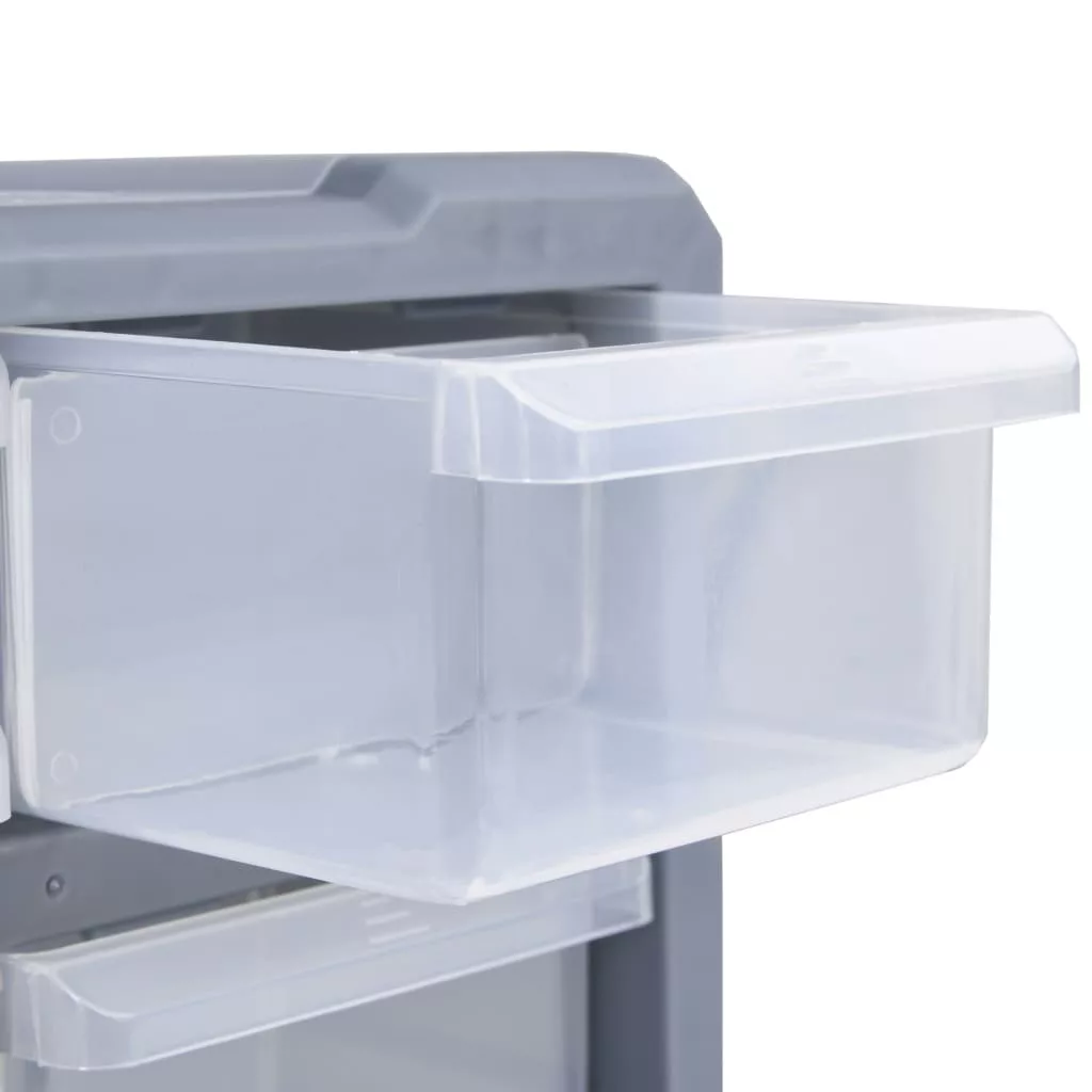 Ez a nélkülözhetetlen 60 fiókos szervező a legkülönfélébb tárgyak rendezett tárolására szolgál. Varróeszközök vagy szögek tárolására is használható. Ez a tárolóegység 60 kis fiókot tartalmaz, amelyekben rendezetten és kézközelben tárolhatja a kéziszerszámokat és a kiegészítőket, például a rögzítőket. A szerszámszekrény ütésálló műanyagból készült, így egyaránt tartós és stabil. A fiókok azonban átlátszó műanyagból készültek, így gyorsan azonosítható a tartalmuk. A szerszámdoboz ideális anyák, csavarok, szegek, általános kellékek és alkatrészek tárolására. Ez a termék falra is szerelhető, és különálló szerszámtárolóként is használható.
