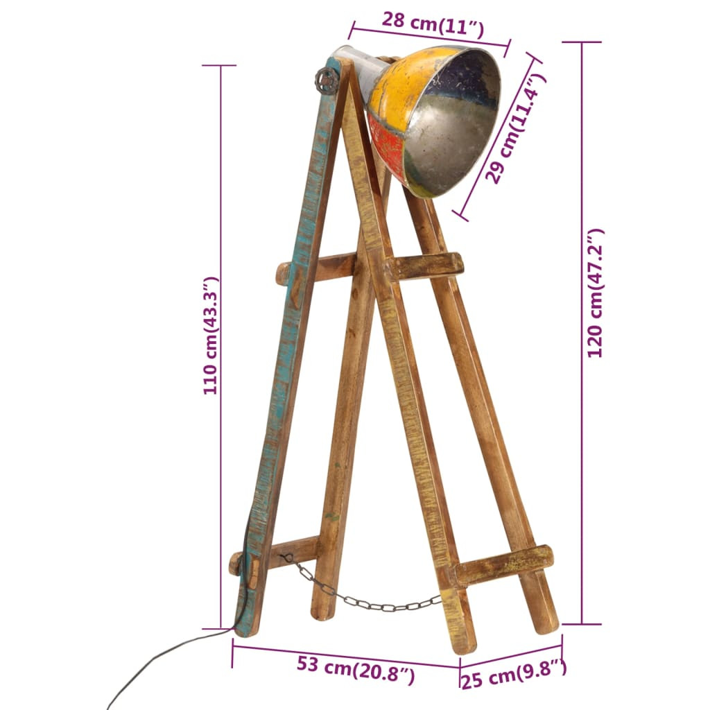 Világosítsa meg lakóterét ezzel a fából készült állólámpával! Ez a lámpa vintage dizájnnal rendelkezik, és divatos bájt visz minden belső térbe. Tömör mangófa váz: Az állólámpa váza tömör mangófából készült. A tömör mangófa egy erős, trópusi keményfa, amelyből strapabíró bútorok készíthetőek. A fa gyönyörű erezetének köszönhetően minden darab kissé különbözik a többitől.Állítható lámpabura: Az állólámpa burája különböző szögekbe állítható, hogy megfeleljen a különböző igényeknek.E27-foglalat: Az állólámpa burája E27-foglalattal rendelkezik egy maximum 25 W-os izzó számára. Többféle színben választhat ki és szerelhet be E27-es izzót, ezzel megteremtve a pihenés és a nyugalom hangulatát.Ipari stílus: A vegyes színű bevonattal és tömör mangófával ellátott vas saroklámpa tökéletesen illeszkedik a vidéki vagy ipari enteriőrökbe. Jó tudni:Ez egy ipari stílusú állólámpa, melynek burája tökéletlenségeket tartalmaz, ami egyedivé teszi a lámpát, és durva megjelenésével egyedivé teszi.A szállítmány nem tartalmazza az izzót.