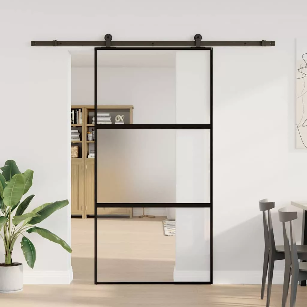 Adjon otthonához egy csipetnyi modern stílust ezzel a tolóajtóval azonnal. Tökéletes megoldást kínál a helytakarékos és nyitott dizájnhoz. Tartós anyag: Az edzett üveg az intelligens szerkezetnek köszönhetően erősebb és tartósabb, mint bármely más üveg. Az edzett üveg arról ismert, hogy ellenáll a súlyos ütéseknek, karcolásoknak, ütéseknek stb.Stabil és hosszú élettartamú keret: Az alumínium egyszerre könnyű és tartós, önvédő oxidrétegének köszönhetően kiváló korrózióállósággal rendelkezik. Ezt az alumínium ajtót hosszú élettartamra tervezték, így ideális választás mindazok számára, akik robusztus ajtót keresnek.Csendes és zökkenőmentes csúszás: A belső csapágyaknak köszönhetően a belső tolóajtó simán és csendesen csúszik.Az ajtók ütközőket is tartalmaznak, hogy megakadályozzák a görgők kisiklását, míg a gumi tömítések tompítják a görgők zökkenését és csökkentik a zajt.Praktikus kialakítás: Az ajtópanel matt üvegből és átlátszó üvegből készült, amely nem csak a fényt ereszti át, de megfelelő magánéletet is biztosít.Vékony kialakítás: A vékony keret modern és minimalista megjelenést kölcsönöz az üveg tolóajtónak.