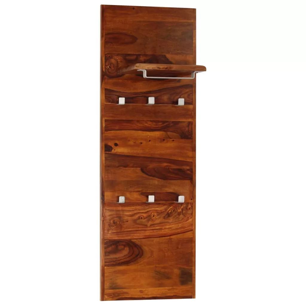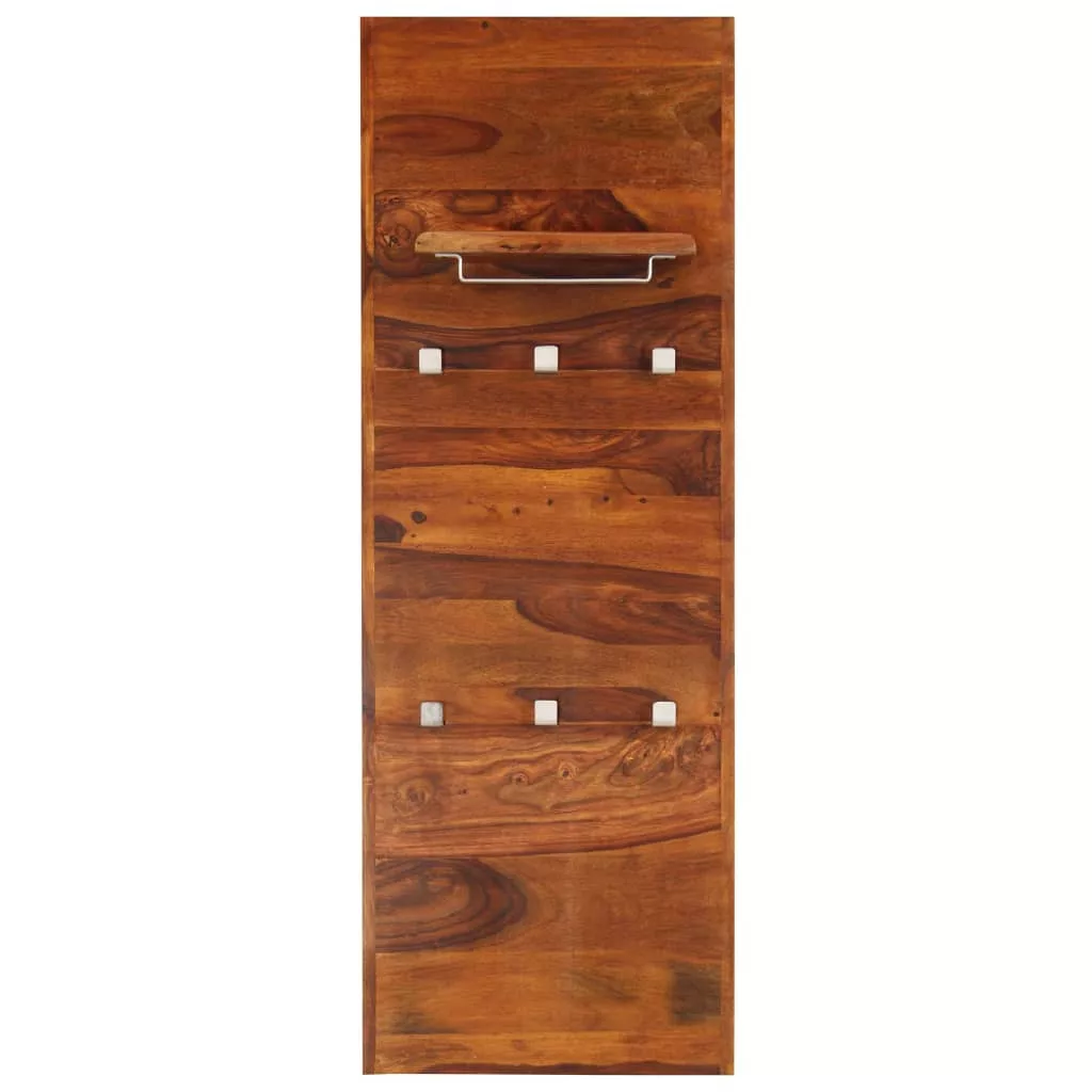 A retró stílusú fogasunk egy kis természetes hangulatot csempész otthonába. A fogas tömör akácfából készült, amely tartós és gyönyörű. Az akácia, más néven kelet-indiai rózsafa vagy paliszander egy trópusi keményfa, mely gazdag erezetéről ismert. A megmunkálás minden lépése a legnagyobb gondossággal történt, legyen szó akár a csiszolásról, a festésről vagy a lakkozásról. A kézműves munkának és a fa gyönyörű erezetének köszönhetően minden bútordarab egyedi megjelenéssel bír, és kissé eltér a többitől. Egy kis polccal és két sorban elhelyezett három-három akasztóval került kialakításra, így elegendő helyet biztosít kabátok, táskák, sálak, sapkák vagy más kis tárgyak tárolására. A fogast összeszerelve szállítjuk; további szerelést nem igényel. Fontos megjegyzés: A bútorok erezete és színe darabonként változhat, így minden fogasunk teljesen egyedi. Ezek kiszállítása véletlenszerűen történik.