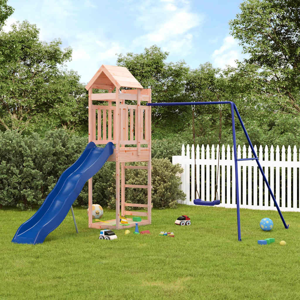Szeretné, ha gyermekei szabadon játszhatnának otthon? Ez a fából készült játszószett varázslatos kalandok játszóterévé varázsolja kertjét! Tömör duglászfenyő: Ez a kerti mászóka tömör duglászfenyőből készült. A tömör duglászfenyő rendkívül tartós, és kültéren is jól használható. A duglászfenyő elég erős ahhoz, hogy minimális gondozás mellett is megtegye a dolgát, az időjárás hatásai ellenére is.Erős és stabil váz: A játszószett fa váza erős szerkezetet és stabilitást biztosít. Emellett a gyerekhinta "A" alakú lábai lehetővé teszik az egyensúlyozást.Multi-aktivitási központ: A játszótérelem 118 cm magas emelvénnyel, valamint hullámos csúszdával, hintaszettel és homokozóval rendelkezik. A kicsik barátaikat is meghívhatják játszani. Átgondolt kialakítás: A környező fa korlátokat úgy tervezték, hogy biztosítsák a gyermekek biztonságát játszás közben. Ezenkívül a fa tető árnyékot biztosít gyermekeinek a forró nyári napokon.Végtelen szórakozás: Ez a rengeteg szórakozást kínáló, fából készült játszószett tökéletes arra, hogy gyermekei és barátaik szórakozzanak, több interaktív időt töltsenek együtt, és emlékeket szerezzenek! Figyelem:Csak háztartási használatraKültéri használatra3 évesnél kisebb gyermekek számára nem alkalmasAjánlott életkor: 3-8 év Megjegyzés:A terméket rögzíteni kell a billenésveszély csökkentése érdekében. A horgonyok a csomag részét képezik. Figyelem. 3 év alatti gyermekek számára nem alkalmas. Csak háztartási használatra.