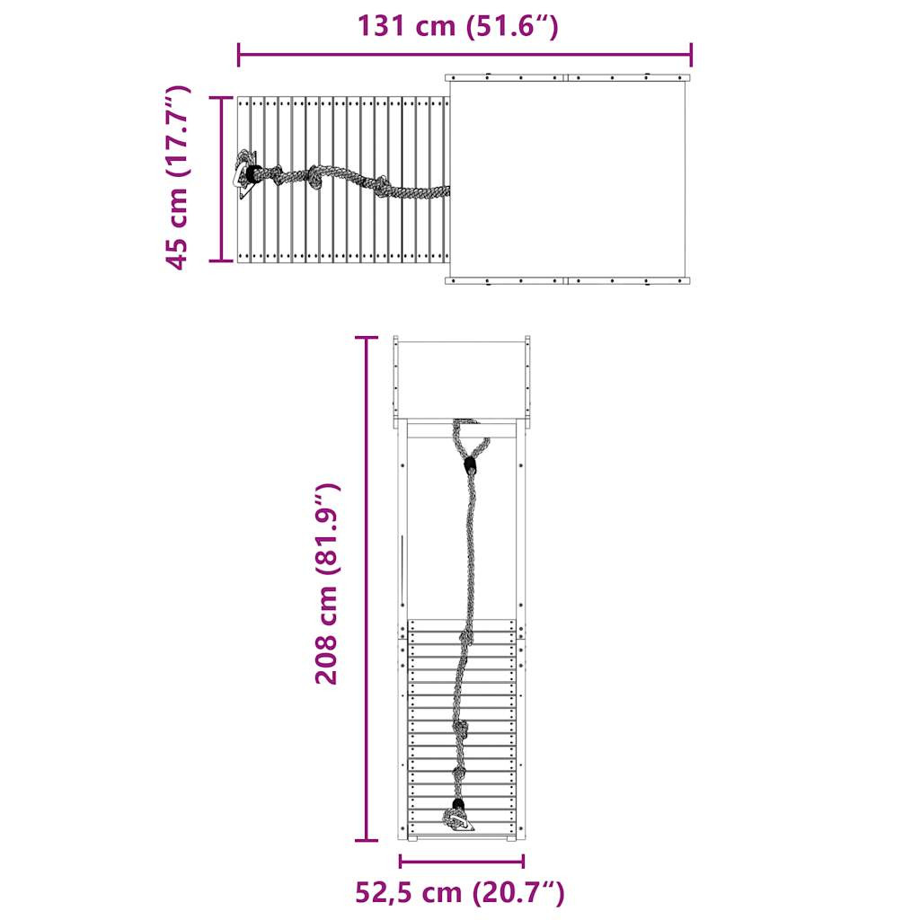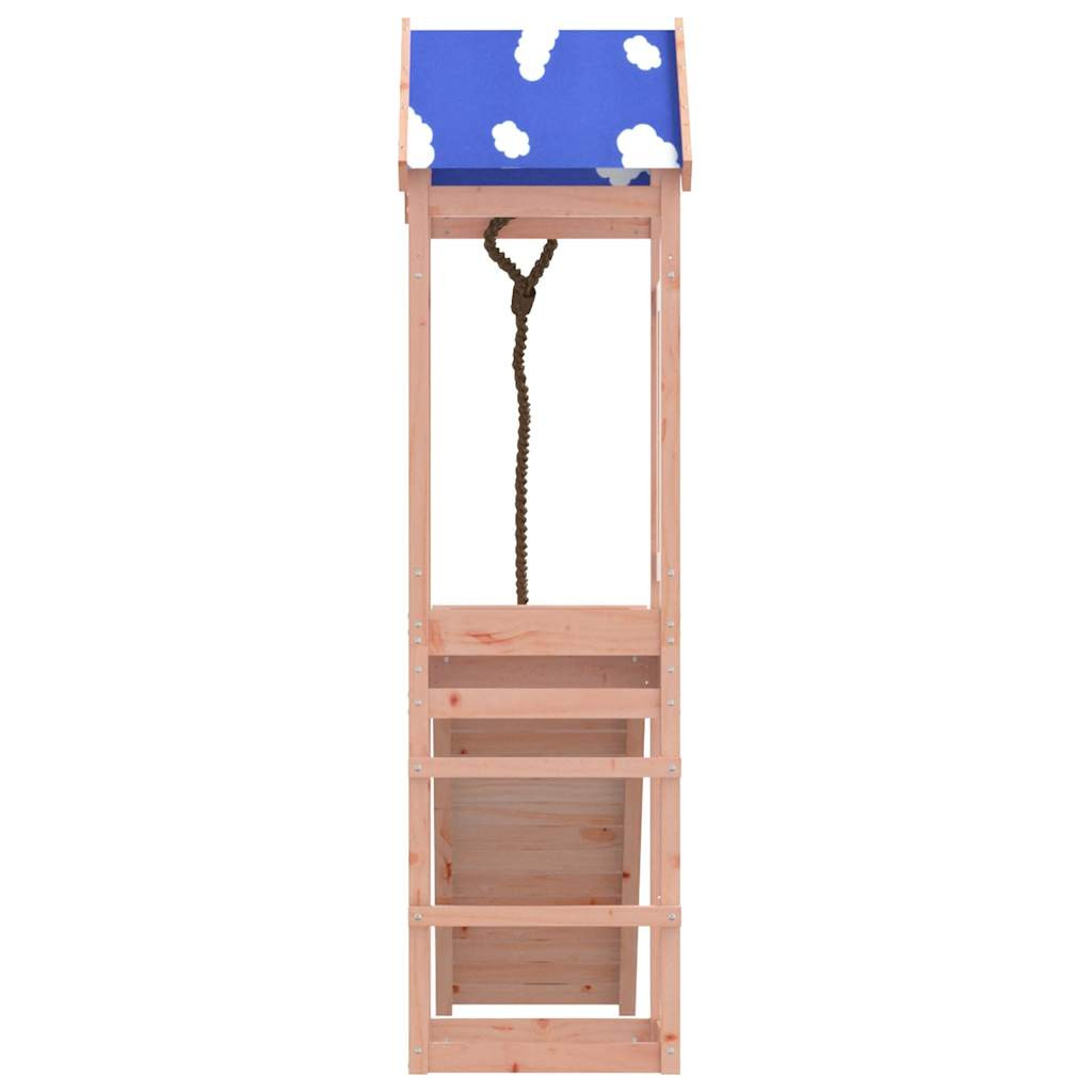 Szeretné, ha gyermekei szabadon játszhatnának otthon? Ez a fából készült játszószett varázslatos kalandok játszóterévé varázsolja kertjét! Tartós anyag: Ez a mászókeret tömör duglászfenyőből készült. A duglászfenyő az erősségéről és tartósságáról ismert. Gazdag vörösesbarna színe és egyedi erezetmintája meleg és természetes hangulatot áraszt. Jó stabilitásának és időjárás-állóságának köszönhetően ideális beltéri és kültéri bútorok készítéséhez.Stabil fa váz: A kerti játszóház faváza erős szerkezetet és stabilitást biztosít.Multi-aktivitási központ: A mászóka 90 cm magas emelvénnyel rendelkezik, és kiemelkedik kötéllel ellátott mászófalával, valamint homokozójával. A kicsik barátaikat is meghívhatják játszani.Átgondolt kialakítás: A környező fa korlátokat úgy tervezték, hogy biztosítsák a gyermekek biztonságát játszás közben. Ezenkívül a felhőmintás tető árnyékot nyújt a gyerekeknek a forró nyári napokon.Végtelen szórakozás: Ez a rengeteg szórakozást kínáló, fából készült kültéri játszószett tökéletes arra, hogy gyermekei és barátaik szórakozzanak, több interaktív időt töltsenek együtt, és emlékeket szerezzenek! Figyelem:Csak háztartási használatraKültéri használatra3 évesnél kisebb gyermekek számára nem alkalmasAjánlott életkor: 3-8 évFelhasználónkénti maximális súly: 45 kg Figyelem. 3 év alatti gyermekek számára nem alkalmas. Csak háztartási használatra.