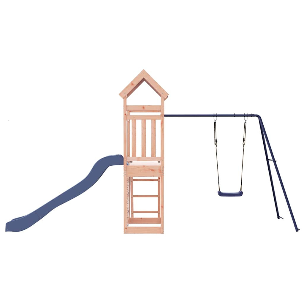 Szeretné, ha gyermekei szabadon játszhatnának otthon? Ez a fából készült játszószett varázslatos kalandok játszóterévé varázsolja kertjét! Tartós anyag: A kerti játszószett váz tömör duglászfenyőből készült. A duglászfenyő az erősségéről és tartósságáról ismert. Gazdag vörösesbarna színe és egyedi erezetmintája meleg és természetes hangulatot áraszt. Jó stabilitásának és időjárás-állóságának köszönhetően ideális beltéri és kültéri bútorok készítéséhez.Stabil fa váz: A kerti játszóház faváza erős szerkezetet és stabilitást biztosít. Emellett a gyerekhinta "A" alakú lábai lehetővé teszik az egyensúlyozást.Multi-aktivitási központ: A mászóka a 90 cm magas emelvény mellett hullámos csúszdával, egy hintával, létrával és homokozóval rendelkezik. A kicsik barátaikat is meghívhatják játszani.Átgondolt kialakítás: A környező fa korlátokat úgy tervezték, hogy biztosítsák a gyermekek biztonságát játszás közben. Ezenkívül a felhőmintás tető árnyékot nyújt a gyerekeknek a forró nyári napokon.Végtelen szórakozás: Ez a rengeteg szórakozást kínáló, fából készült kültéri játszószett tökéletes arra, hogy gyermekei és barátaik szórakozzanak, több interaktív időt töltsenek együtt, és emlékeket szerezzenek! Figyelem:Csak háztartási használatraKültéri használatra3 évesnél kisebb gyermekek számára nem alkalmasAjánlott életkor: 3-8 év Figyelem. 3 év alatti gyermekek számára nem alkalmas. Csak háztartási használatra.