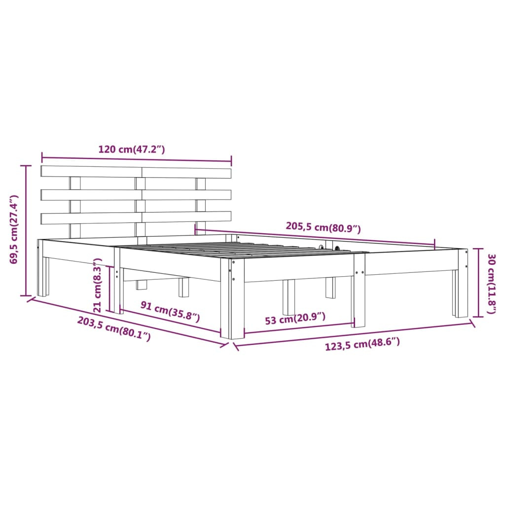 Varázsolja hálószobáját modernné fából készült ágykeretünkkel! Praktikus és mutatós kiegészítője lesz otthonának. Prémium tömör fa: A tömör fenyőfa egy gyönyörű természetes anyag. A fenyőfa erezete egyenes, a csomók adják az anyag jellegzetes, rusztikus megjelenését.Masszív ágykeret: A fa keret erős szerkezetet és stabilitást biztosít. A furnérlemez rácsok jó súlyelosztást biztosítanak, így a matrac a helyén marad, amikor éjszaka forgolódik alvás közben.Kényelmes fejtámla: A klasszikus fejtámla kényelmes pihenést tesz lehetővé olvasás vagy filmnézés közben. Megjegyzés:Figyelem: A csomag csak az ágykeretet tartalmazza. A matrac nincs mellékelve. A hozzá illő matracokat megtekintheti áruházunkban.Ez az ágykeret 120 x 200 cm-es matrachoz alkalmas.