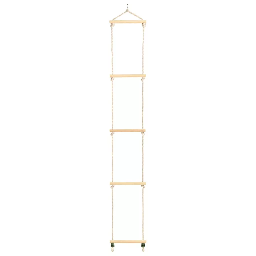 Ezzel az ötfokos fa kötéllétrával gyermekei garantáltan jól fognak szórakozni! A kötéllétra tömör fa fokokkal és polietilén kötéllel lett ellátva, így elég erős ahhoz, hogy csemetéi önfeledten másszanak rajta. A létra időjárásálló, így bel- és kültéri használatra is alkalmas. Ráadásul a kötelek vége felfüggesztő gyűrűvel lett ellátva, mely segítségével hintára vagy játszótoronyra is felszerelhető. Figyelem: a létra 3 évesnél idősebb gyermekek számára alkalmas. A biztonság érdekében kérjük, ügyeljen rá, hogy a kötéllétrát csak felnőtt közvetlen felügyelete mellett használják. Figyelem. Csak háztartási használatra.