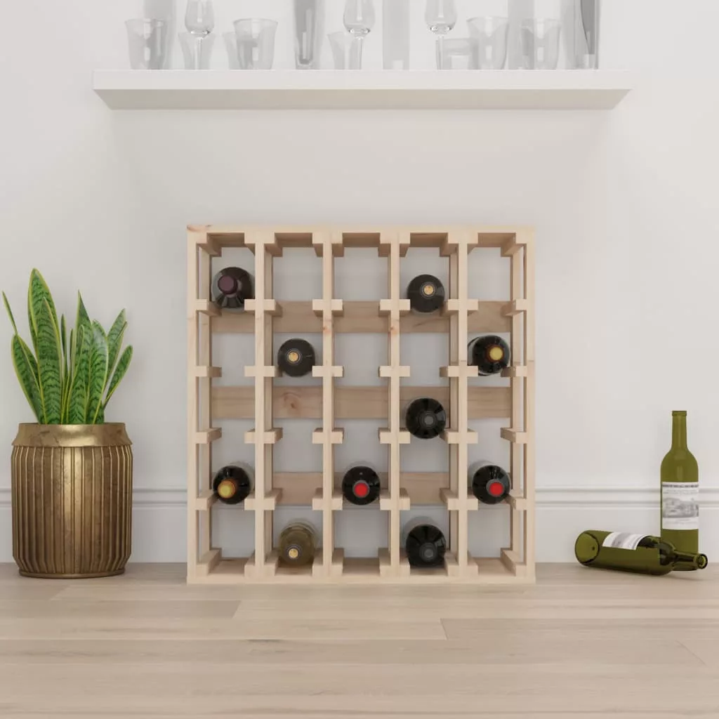 Tárolja, érlelje és mutassa be stílusosan borait ezzel a fa bortartóval! Tömör fenyőfa: A tömör fenyőfa egy gyönyörű természetes anyag. A fenyőfa erezete egyenes, a csomók pedig jellegzetes, rusztikus megjelenést kölcsönöznek az anyagnak.Bőséges tárolóhely: A bortartó bőséges tárolóhelyet biztosít a borok tárolására. Ideális akár 25 üveg bor tárolására. Masszív váz: A faváz erős szerkezetet és stabilitást biztosít. Figyelem:A dőlés megakadályozása érdekében a terméket a mellékelt tartóelem segítségével rögzíteni kell a falhoz. Megjegyzés:Az egyszerű összeszerelés érdekében minden termékhez mellékelünk összeszerelési útmutatót.