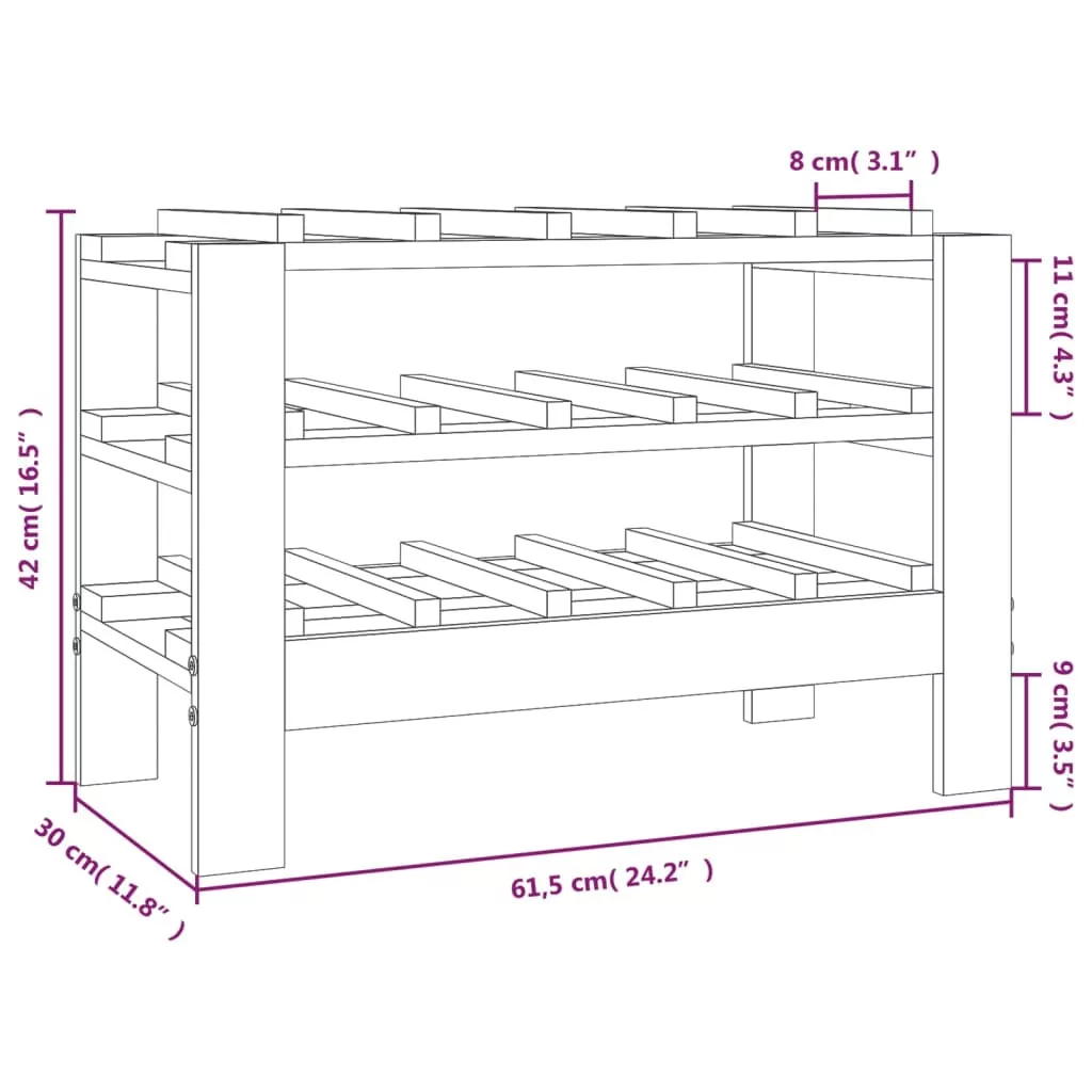 tömör fenyőfa bortartó állvány 61,5 x 30 x 42 cm
