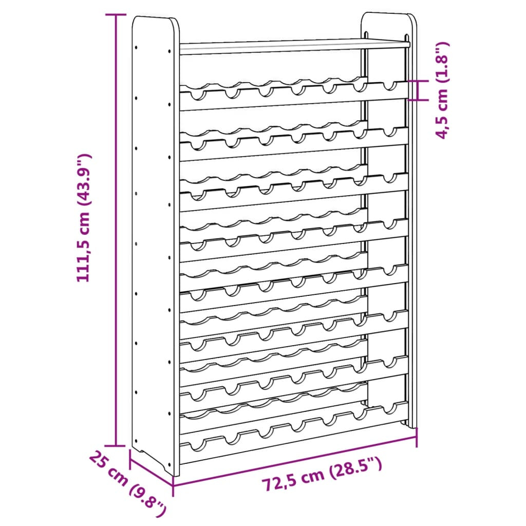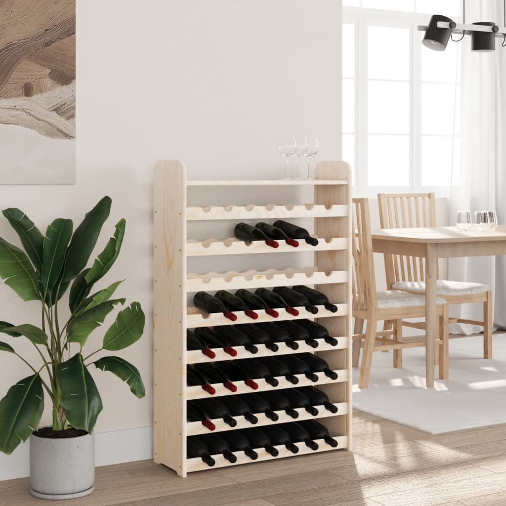 Tárolja, érlelje és mutassa be stílusosan borait ezzel a fa bortartóval! Tömör fenyőfa: Ez a borospolc tömör fenyőfából készült. A tömör fenyőfa egy gyönyörű, természetes anyag. A fenyőfa egyenes erezetű, a csomók pedig jellegzetes, rusztikus megjelenést biztosítanak az anyagnak.Bőséges tárolóhely: A 8 szintes bortartó polc 56 palack bor tárolására alkalmas. Minden szinten 7 palack fér el.Hullámos kialakítás: A hullámos kialakításnak köszönhetően a polc nedvesen tartja a parafadugót, hogy a bor friss maradhasson.Széleskörű alkalmazás: A borosüveg tartó használható konyhában, kamrában, szekrényben, étkezőben, pincében, pulton, bárban vagy borospincében... stb. Figyelem:A felborulás elkerülése érdekében ezt a terméket fali rögzítőeszközzel (nem tartozék) kell használni.