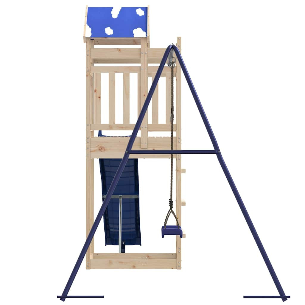 Szeretné, ha gyermekei szabadon játszhatnának otthon? Ez a fából készült játszószett varázslatos kalandok játszóterévé varázsolja kertjét! Tartós anyag: A játszószett váza tömör fenyőfából készült. A tömör fenyőfa az erősségéről és tartósságáról ismert. Egyenes erezete és jellegzetes csomói hozzájárulnak rusztikus varázsához.Stabil fa váz: A kerti játszóház faváza erős szerkezetet és stabilitást biztosít. Emellett a gyerekhinta "A" alakú lábai lehetővé teszik az egyensúlyozást.Multi-aktivitási központ: A mászóka a 118 cm magas emelvény mellett hullámos csúszdával, egy hintával és homokozóval rendelkezik. A kicsik barátaikat is meghívhatják játszani.Átgondolt kialakítás: A környező fa korlátokat úgy tervezték, hogy biztosítsák a gyermekek biztonságát játszás közben. Ezenkívül a felhőmintás tető árnyékot nyújt a gyerekeknek a forró nyári napokon.Végtelen szórakozás: Ez a rengeteg szórakozást kínáló, fából készült kültéri játszószett tökéletes arra, hogy gyermekei és barátaik szórakozzanak, több interaktív időt töltsenek együtt, és emlékeket szerezzenek! Figyelem:Csak háztartási használatraKültéri használatra3 évesnél kisebb gyermekek számára nem alkalmasAjánlott életkor: 3-8 év
