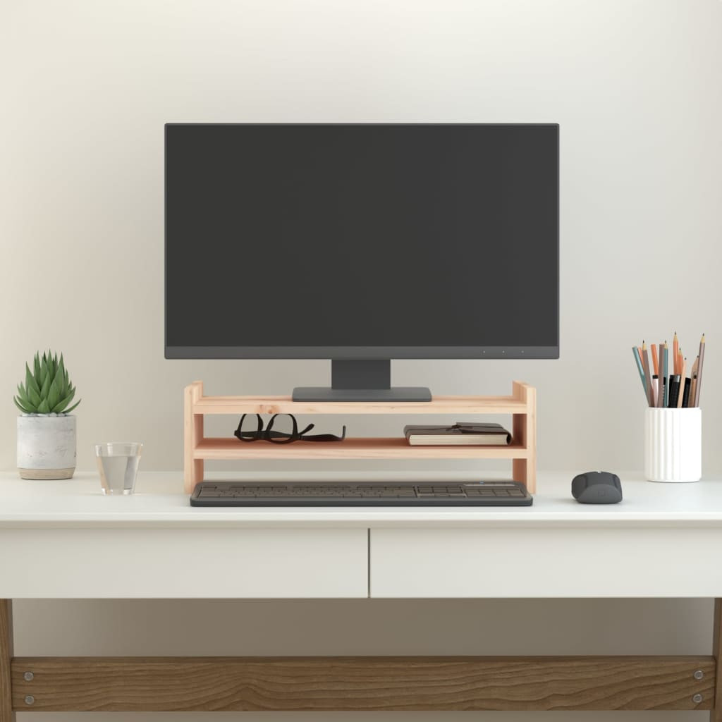Ez a klasszikus fa monitorállvány minimalista dizájnnal fantasztikus kiegészítője lesz jelenlegi lakberendezésének. Tömör fenyőfa: A tömör fenyőfa egy gyönyörű természetes anyag. A fenyőfa erezete egyenes, a csomók adják az anyag jellegzetes, rusztikus megjelenését.Stabil váz: A számítógépállvány fa váza szilárdságot és stabilitást biztosít.Tárolóhely: A számítógép-monitor állvány alatti helyen elfér a billentyűzet, a DVD-lejátszó, a játékkonzol, a streaming eszköz, a vevőegységek, a médiahordozók, a jegyzetfüzetek, a tollak és hasonló tárgyak is.Feszültségcsökkentő funkció: Ez a billentyűzetállvány megemeli az asztali monitort és más multimédiás eszközöket. A megemelt kijelzőnek köszönhetően csökken a nyak és a hát terhelése. Megjegyzés:Az egyszerű összeszerelés érdekében minden termékhez mellékelünk összeszerelési útmutatót.