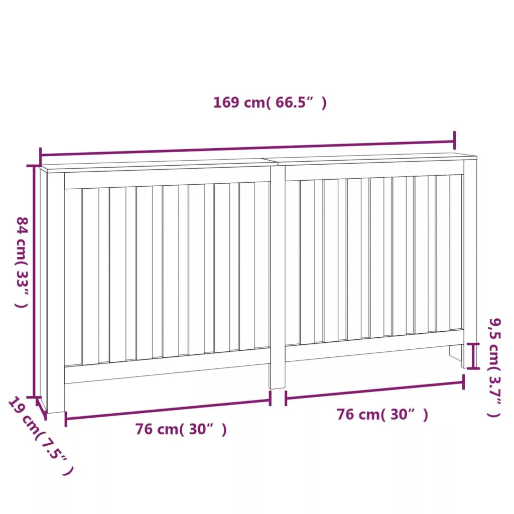 tömör fenyőfa radiátorburkolat 169x19x84 cm