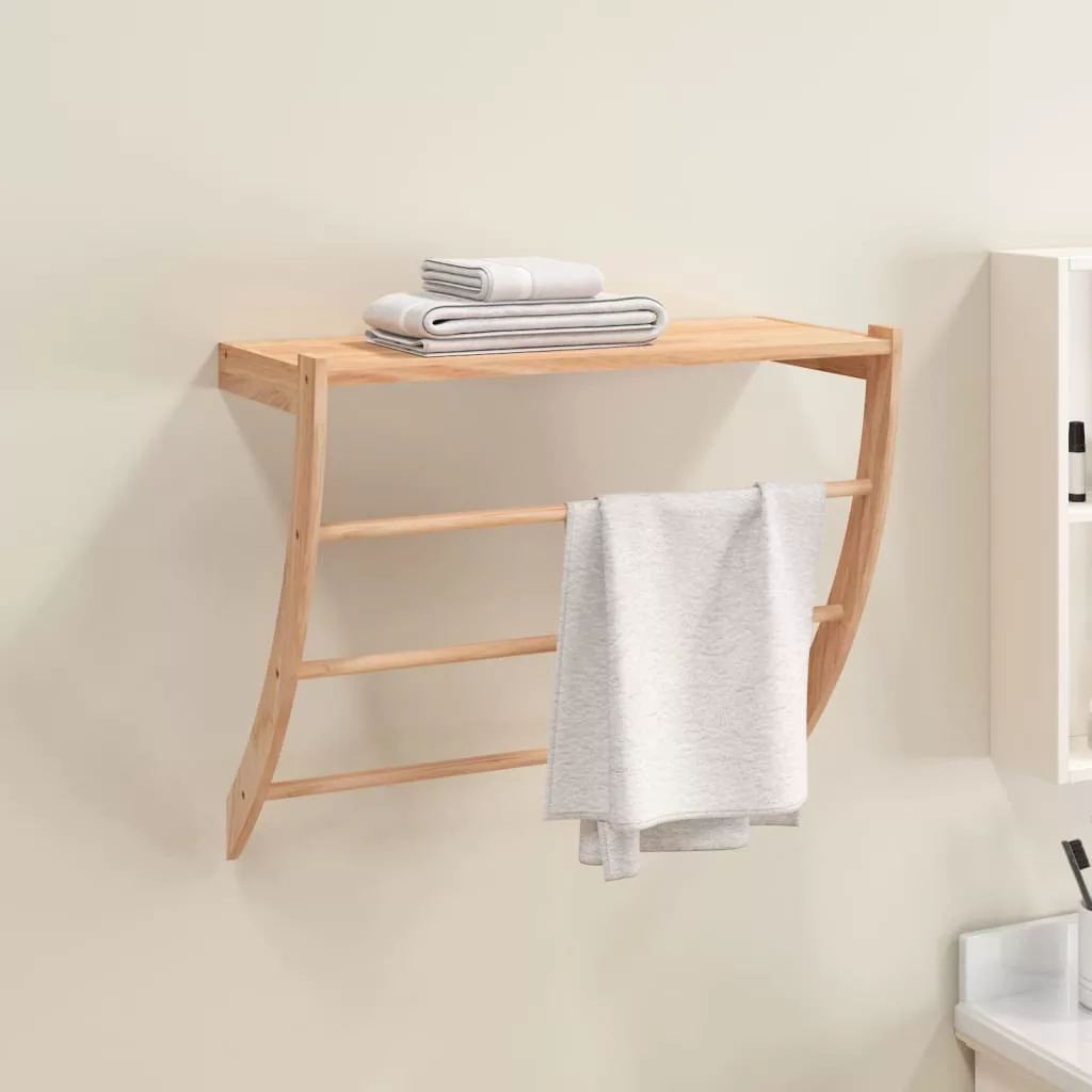 Hozza ki a legtöbbet a rendelkezésére álló térből a fürdőszobában ezzel a rusztikus megjelenésű, fa törölközőtartóval! Tömör diófa: A tömör diófa sűrű és robusztus fa, mely rendkívül ellenálló a kopással szemben, valamint jellegzetes színéről és vonzó erezetmintájáról híres.Kiváló tároló: A 3 törülközőrúddal és polccal ellátott törülközőtartó állvány bőséges helyet biztosít a törölközők és piperecikkek elhelyezéséhez, hogy a fürdőszobában ne legyen rendetlenség.Ívelt kialakítás: A praktikus törülközőakasztó ívelt konzoljai és 3 törülközőrácsa természetes bájt sugároznak, valamint jó szellőzést és tisztaságot biztosítanak. Megjegyzés:Az egyszerű összeszerelés érdekében minden termékhez mellékelünk összeszerelési útmutatót.A falon belüli csavar(ok) és dugó(k) nem alaptartozékok. Keressen és használjon a falának megfelelő csavar(oka)t és dugó(ka)t. Ha bizonytalan, kérje szakember tanácsát. Gondosan olvassa el és kövesse a használati utasítás minden lépését.