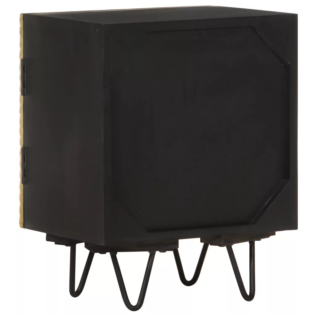 Ez a fa éjjeliszekrény hálószobája dekoratív és praktikus kiegészítője lesz. Ez az éjjeliszekrény tömör mangófából, egy trópusi keményfából készült. Elbírja a ránehezedő súlyt, és tartós is. Emellett a kifinomult kézműves munkának és a fa gyönyörű erezetének köszönhetően minden darab kissé különbözik a többitől. Az éjjeliszekrény egy sárgaréz ajtóval rendelkezik, amely tovább fokozza szépségét. Robusztus teteje és az ajtón belüli helyiség elegendő helyet biztosít a különféle tárgyak, például könyvek, poharak és órák rendezett és elérhető közelségben tartásához. Fontos megjegyzés: A szín minden darab esetében eltérő, így minden bútor egyedi. A kiszállítás véletlenszerűen történik, biztosítva terméke exkluzivitását és egyediségét.