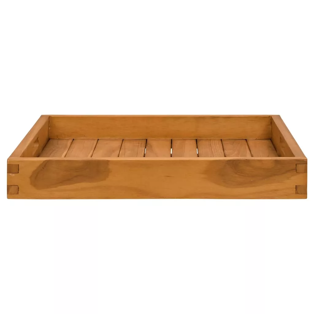 A klasszikus tálalótálca rendkívül tartós tík keményfából készült. Ez a tíkfa elem a letisztult megjelenés érdekében érlelt, kemencében szárított, majd finomra lett csiszolva. A tíkfa rendkívüli erejéről és időjárásállóságáról ismert, továbbá ideális választás, ha hosszan tartó fatálcát szeretne vásárolni. A teatálca ezenkívül könnyű és jellegzetes otthoni kellékként is használható, melyen legfontosabb tárgyait helyezheti el. A fa tálalótálca magasított szélekkel rendelkezik, melyek megakadályozzák a folyadékok kiömlését. Ráadásul a könnyű mozgatás érdekében erős, recés fogantyúkkal van ellátva.
