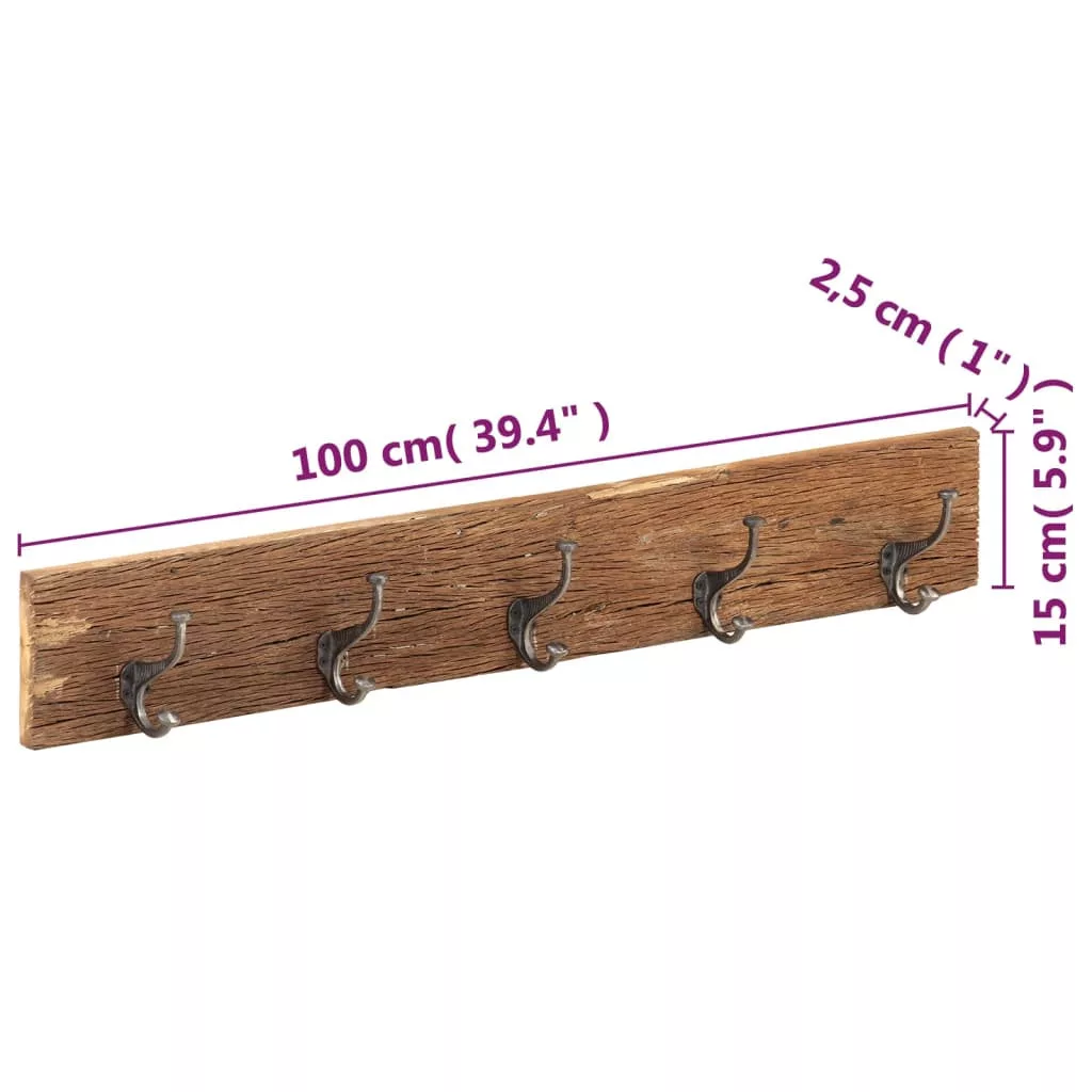 tömör újrahasznosított fa fogas 5 akasztóval 100 x 2,5 x 15 cm