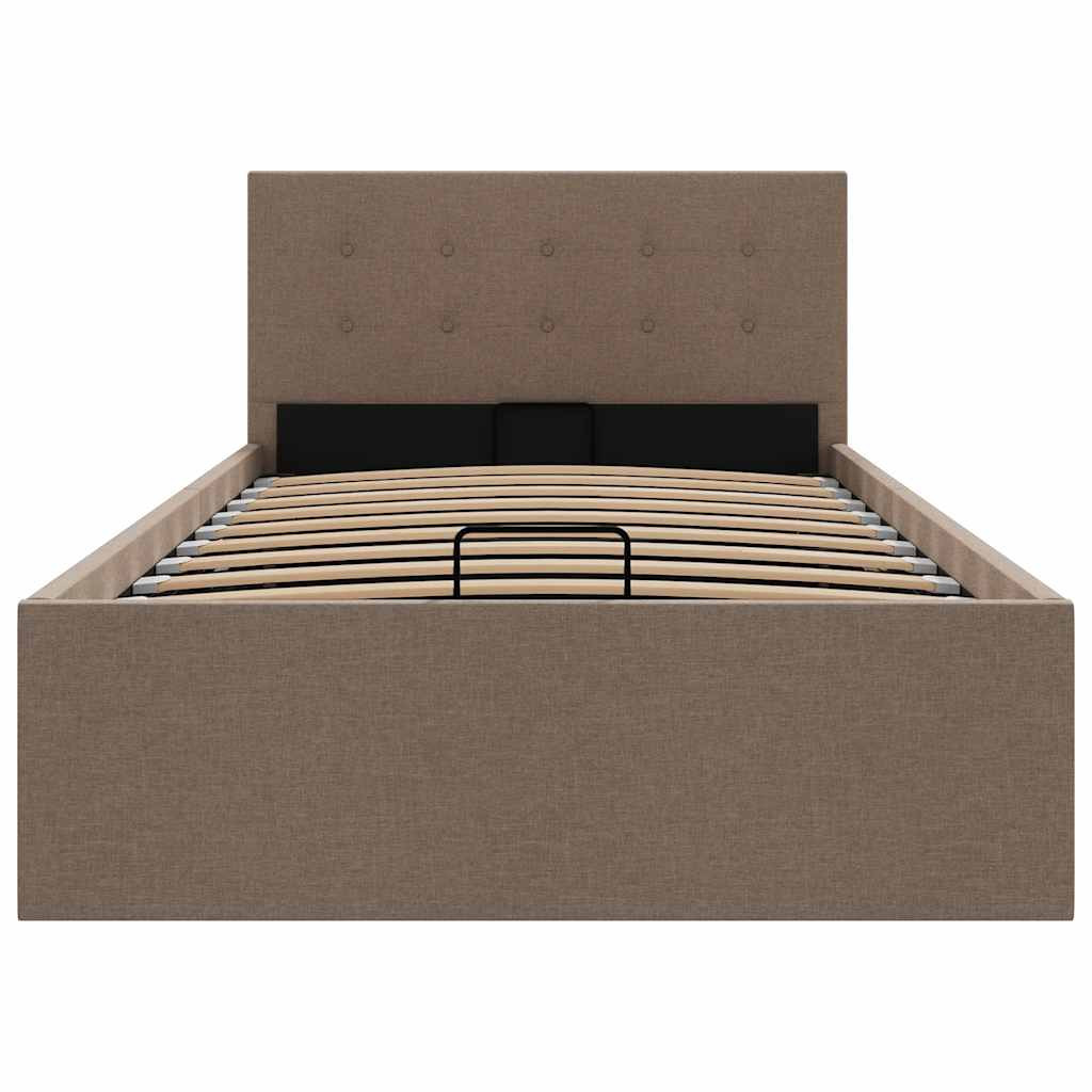 tópszínű szövet ágykeret hidraulikus tárolóval 90 x 200 cm