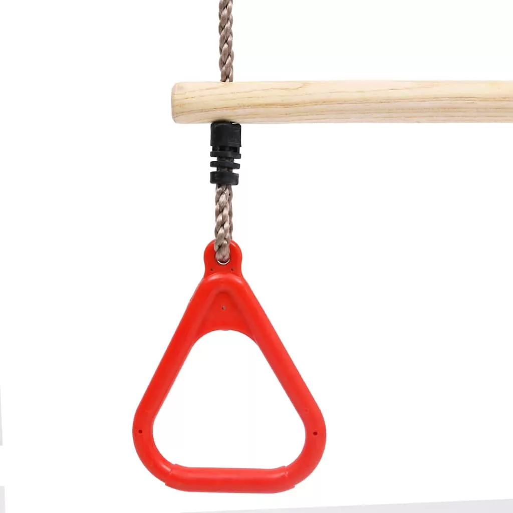 Ez a gyűrűvel ellátott trapézhintarúd javítja a gyermekek koordinációját, és rugalmasabbá teszi őket, miközben élvezik hintát, és fizikai és szellemi egészségüket is javítják. A trapézrúdból és gyűrűkből álló szett két szórakoztató terméket ötvöz. Lehetővé teszi gyermekei számára, hogy a gyűrűkön lógjanak, vagy a rúdon hintázzanak. A rúd és a gyűrűk egyaránt erősek, és könnyű kapaszkodni beléjük. A kötelek puha tapintásúak, vízállóak, és az időjárásnak is ellenállnak. Emellett a mászórúd felülete csúszásgátló csíkokkal rendelkezik a súrlódás növelése és a gyermekek biztonsága érdekében. Figyelmeztetés Csak otthoni használatra. Csak szabadtéri használatra. Legfeljebb 50 kg-os személy használhatja. Hosszú zsinór. Fulladásveszély! Figyelem. Csak háztartási használatra.