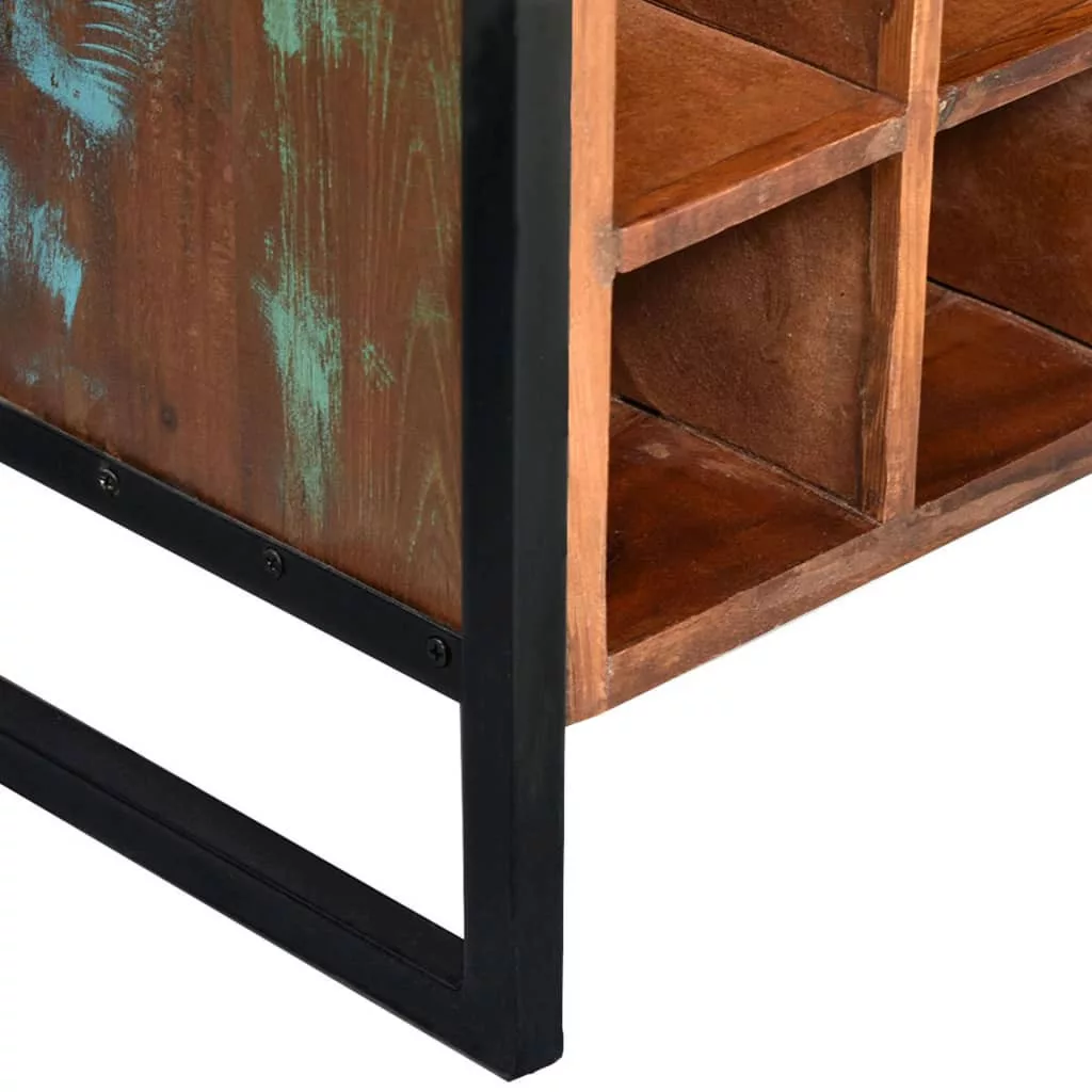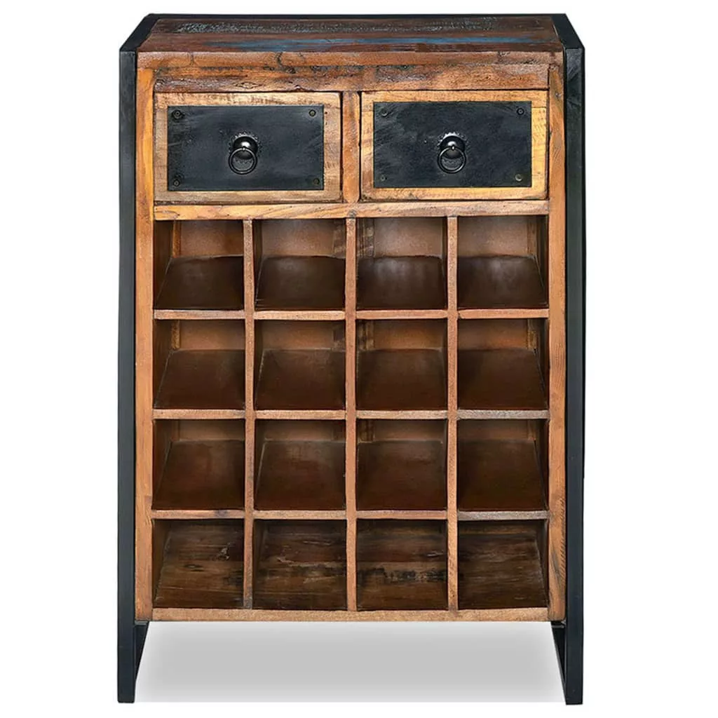 Ez az ipari stílusú fa bortároló tökéletes választás borkedvelők számára. Ez a megkapó bortároló állvány rusztikus bájt csempész a konyhájába, étkezőjébe vagy nappalijába. 16 palacknak elegendő helyet biztosít, és még két fiókkal is fel lett szerelve, melyben az apró kiegészítők tárolhatók, így ezen a borállványon minden olyasmi tárolható, amire szüksége lehet egy pohár bor felszolgálásakor. Ez a bortároló újrahasznosított fából készült, mely rendkívül tartós, időtálló és gyönyörű, ráadásul különféle fák jellegzetességeit hordozza magában, pl. tíkfa, mangófa, akácfa stb. Mindegyik bútordarab egyedi megjelenéssel bír, és kis mértékben eltér társaitól. Az erezet- és színbeli eltérések minden darabnak egyedi karaktert kölcsönöznek, és kiemelik vintage stílusukat. Ez a bortároló teljes egészében kézzel készült, és a munkafolyamat minden egyes lépése a legnagyobb gondossággal lett elvégezve, legyen szó a csiszolásról, a festésről vagy a lakkozásról. A termék összeszerelve érkezik, további szerelésre nincs szükség. Fontos: A bútor színe darabonként változhat, amitől minden bortartó állványunk teljesen egyedi. Ezek kiszállítása véletlenszerűen történik.
