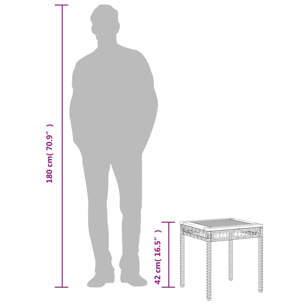 vegyes bézs polyrattan és akácfa kerti asztal 38 x 38 x 42 cm