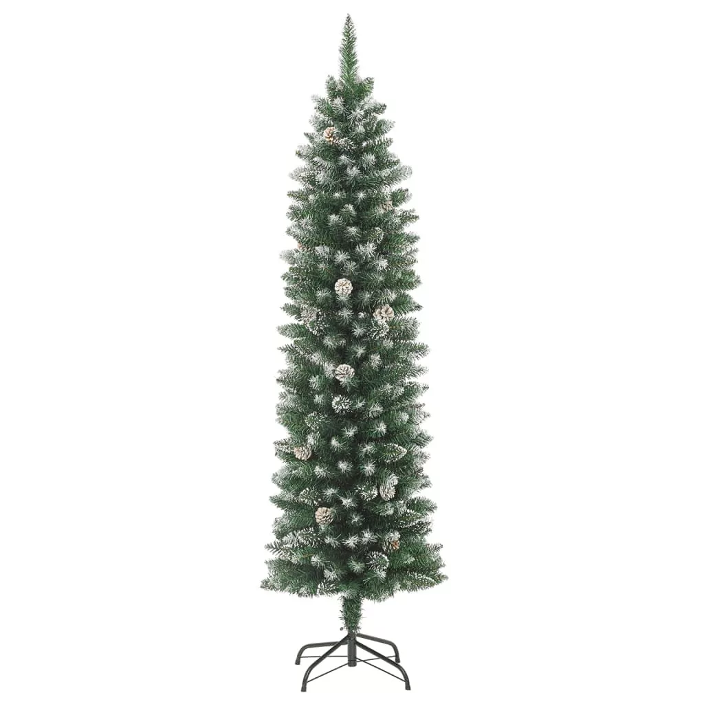 Varázsoljon ünnepi hangulatot otthonába ezzel a klasszikus vékony karácsonyfával! Vékony kialakítás: Ez a vékony fa vonzó bájt és ünnepi hangulatot visz a bejárathoz vagy bármilyen szűk térbe.Masszív állvány: A műfa masszív acélállványa optimális stabilitást biztosít a fának.PVC csúcsok: A karácsonyi dekoráció hegyes csúcsokkal van ellátva, amelyek valósághű és gyönyörű megjelenést biztosítanak.Gyönyörű dekoráció: A karácsonyfán tobozok találhatók, amelyek gyönyörű és természetes hatást keltenek. Emellett fehér műhóval van díszítve a lenyűgöző hópelyhes megjelenés érdekében.
