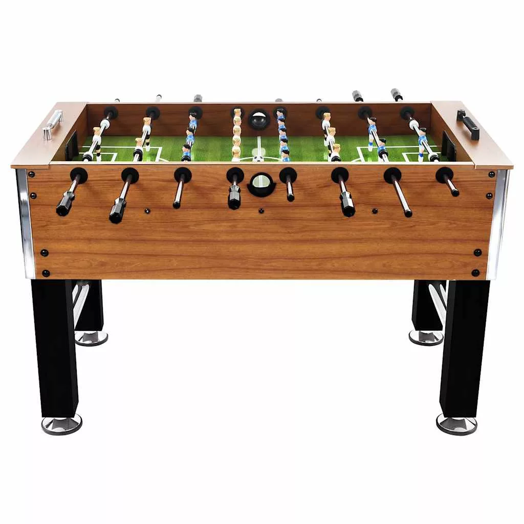 Ez a focijátékasztal tökéletes egy az egy elleni mérkőzésekhez vagy csoportos játékhoz, lehetővé téve a barátságos versengést a családdal és a barátokkal. Tartós konstrukció: Ez az MDF-ből és acélból készült focijáték-asztal úgy készült, hogy kibírja az intenzív mérkőzéseket és játékot, így hosszú éveken át tartó élvezetet biztosít.Kényelmes játékélmény: Élvezze a zökkenőmentes játékot a rugalmas csúszó játékos rudakkal és a csúszásmentes fogantyúkkal, amelyeket a könnyű fogás és a kényelmes játék érdekében terveztünk, így minden mérkőzés élvezetes lesz.Állítható kialakítás: Az asztal állítható lábakkal rendelkezik, így a maximális kényelem és rugalmasság érdekében testre szabhatja a magasságot.Sokoldalú szórakozás: Ez a kompakt fociasztal tökéletes családi összejövetelekhez, partikhoz vagy alkalmi játékhoz, a foci izgalmát hozza el otthonába, így ideális a gyerekek és felnőttek számára egyaránt az ünnepek és különleges alkalmak alatt.Teljes futballkészlet: Ez a fociasztal teljesen felszerelt, minden szükséges dologgal: 2 kapu, 2 labda, 2 eredményjelző, 8 játékos rúd és 22 játékos, így igazán autentikus játékélményt nyújt. Figyelem. 3 év alatti gyermekek számára nem alkalmas. Kis alkatrészek. Fulladást okozhat.