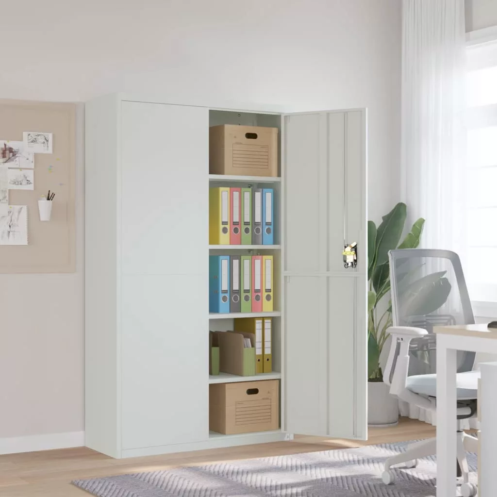 Ez az egyszerű, de stílusos dizájnnal rendelkező, extra széles irattartó szekrény nagyszerű választás az akták és egyéb irodai kellékek rendezett tárolásához. Strapabíró anyag: Az acél rendkívül kemény és erős anyag. Szilárdságot és stabilitást biztosít. Az acél felületén lévő porbevonat védőréteget képez a rozsda, a korrózió és a kopás ellen. A porszórt acélból készült irattartó szekrényt tisztítani és karbantartani is könnyű.Állítható polcok: A tálalószekrény 4 állítható polccal rendelkezik, így iratait stílusosan kategóriákba rendezheti.Bőséges tárolóhely: Ez az irodai szekrény bőséges helyet biztosít az akták és egyéb irodai eszközök tárolására.Zárható rendszer: Ez a zárható kialakítás garantálja az iratok és a lényeges dokumentumok biztonságát. Figyelem:A felborulás elkerülése érdekében ezt a terméket a mellékelt fali rögzítőeszközzel kell használni.