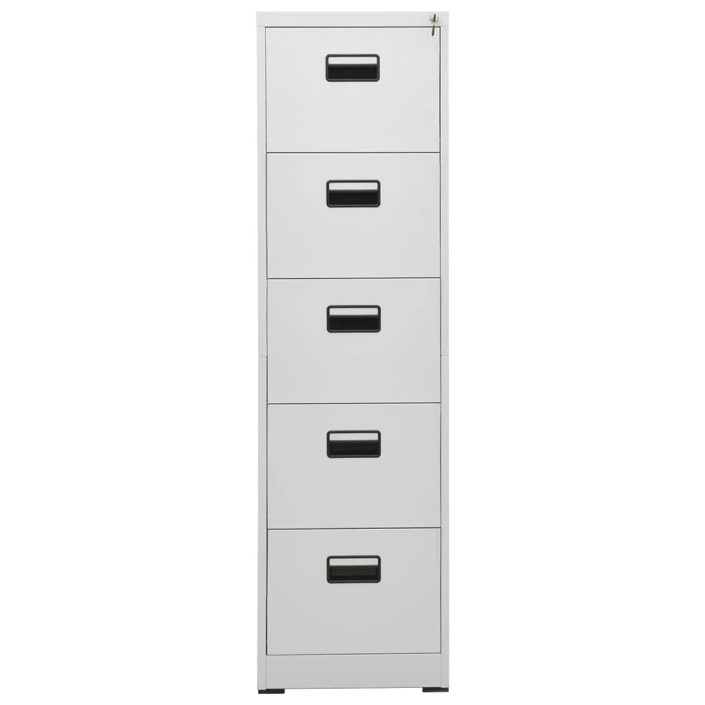 Ez a modern kialakítású irattartó szekrény ideális választás iratai tárolásához. Ez az irodai szekrény acélból készült, így tartós és könnyen tisztítható. Az 5 fiókkal és 1 zárral ellátott iratszekrényben rendezetten és biztonságban tarthatja iratait. Minden fiók 1 kivehető akasztórúddal van felszerelve, amely szabadon kombinálható aktaméretű és A4-es függő iratmappa tárolására. A 3 részes golyóscsapágyakkal ellátott fiókok zökkenőmentes nyitást és zárást biztosítanak, így még fokozott terhelés mellett is teljesen kihúzhatók. Az iratszekrény ikonikus kialakításának köszönhetően bármilyen irodai dekorációhoz illik.