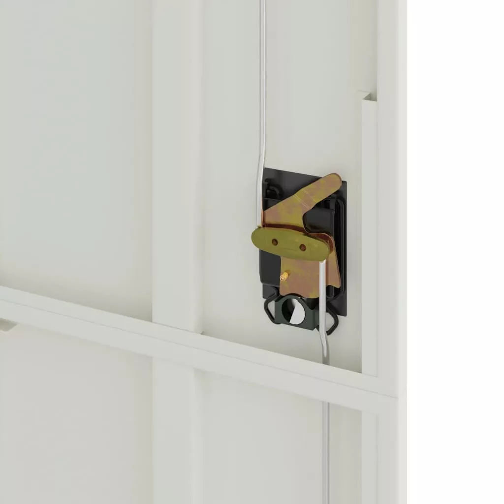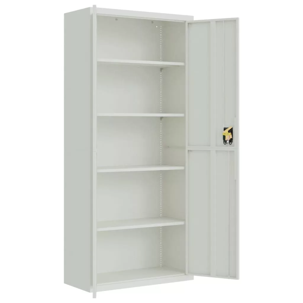 Ez az egyszerű, de stílusos dizájnnal rendelkező, extra magas irattartó szekrény nagyszerű választás az akták és egyéb irodai kellékek rendezett tárolásához. Strapabíró anyag: Az acél rendkívül kemény és erős anyag. Szilárdságot és stabilitást biztosít. Az acél felületén lévő porbevonat védőréteget képez a rozsda, a korrózió és a kopás ellen. A porszórt acélból készült irattartó szekrényt tisztítani és karbantartani is könnyű.Állítható polcok: A tálalószekrény 4 állítható polccal rendelkezik, így iratait stílusosan kategóriákba rendezheti.Bőséges tárolóhely: Ez az irodai szekrény bőséges helyet biztosít az akták és egyéb irodai eszközök tárolására.Zárható rendszer: Ez a zárható kialakítás garantálja az iratok és a lényeges dokumentumok biztonságát. Figyelem:A felborulás elkerülése érdekében ezt a terméket a mellékelt fali rögzítőeszközzel kell használni.