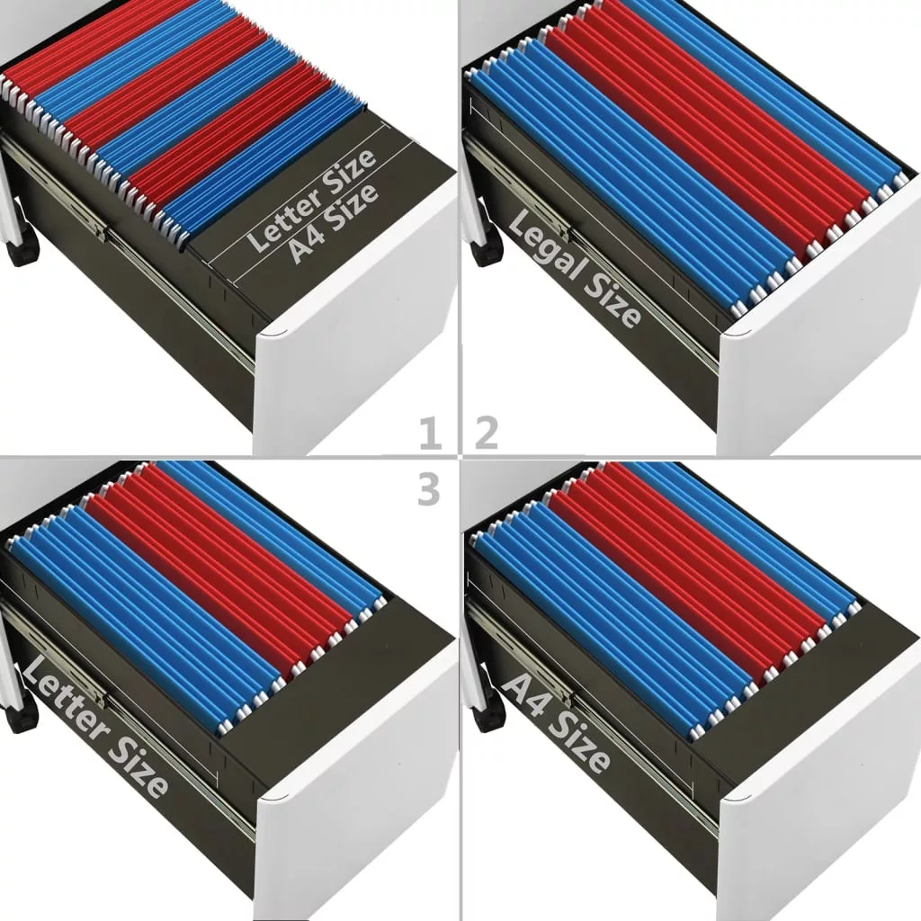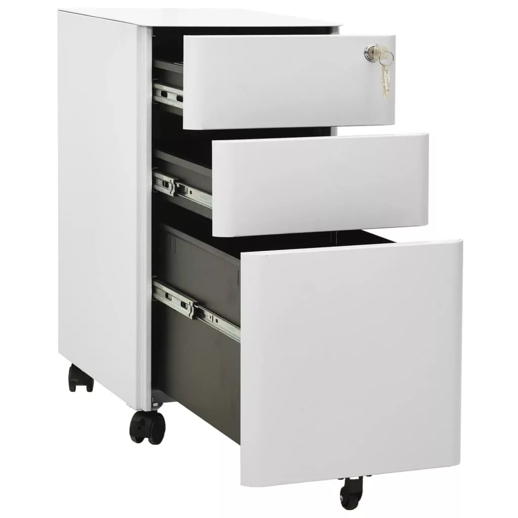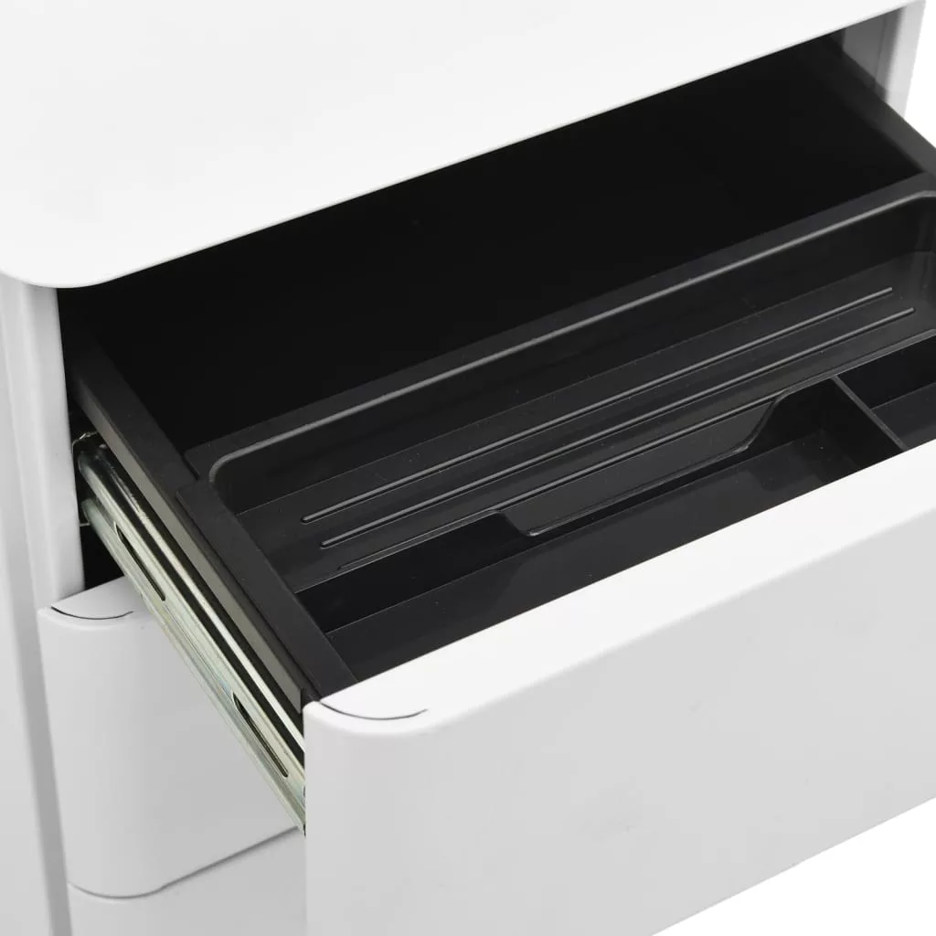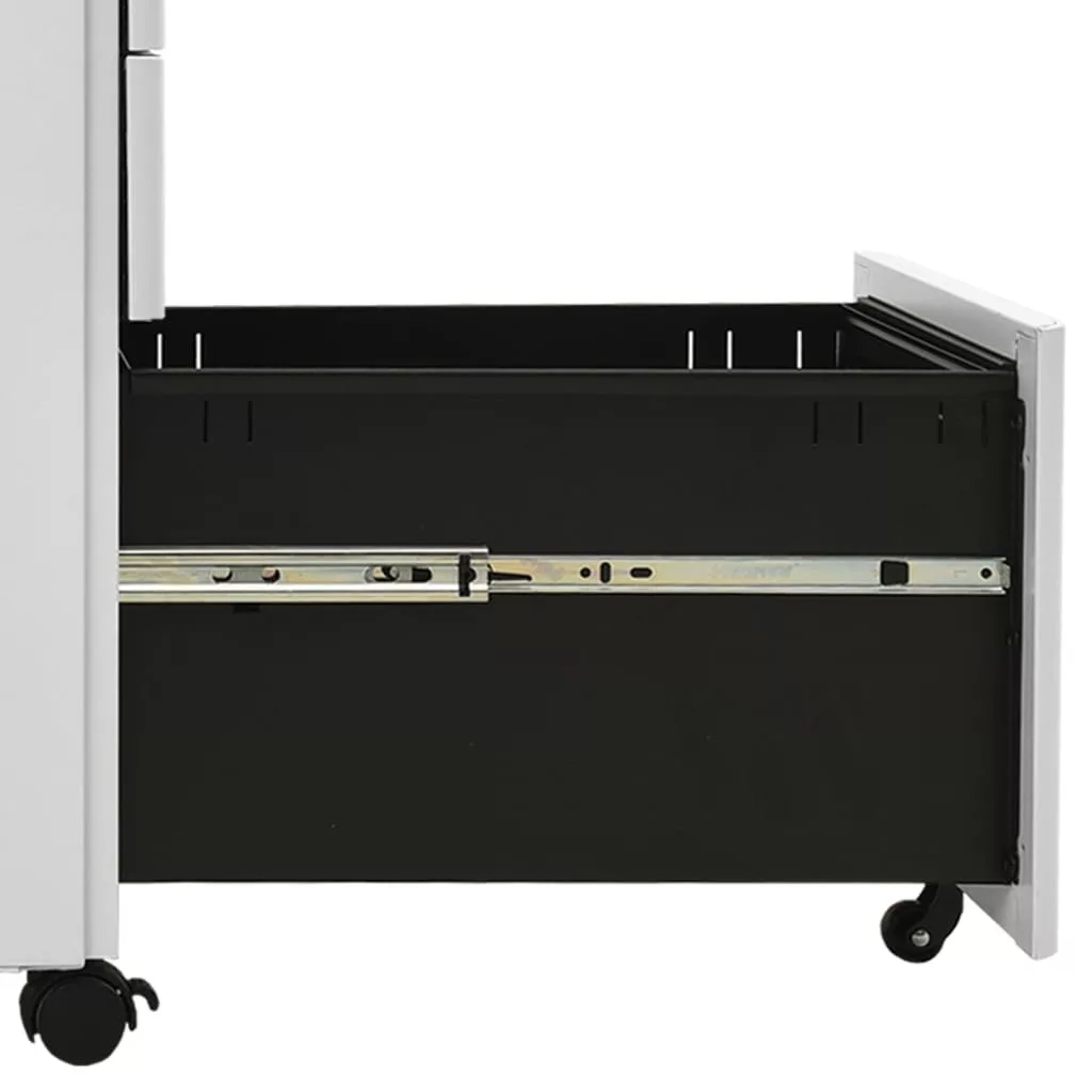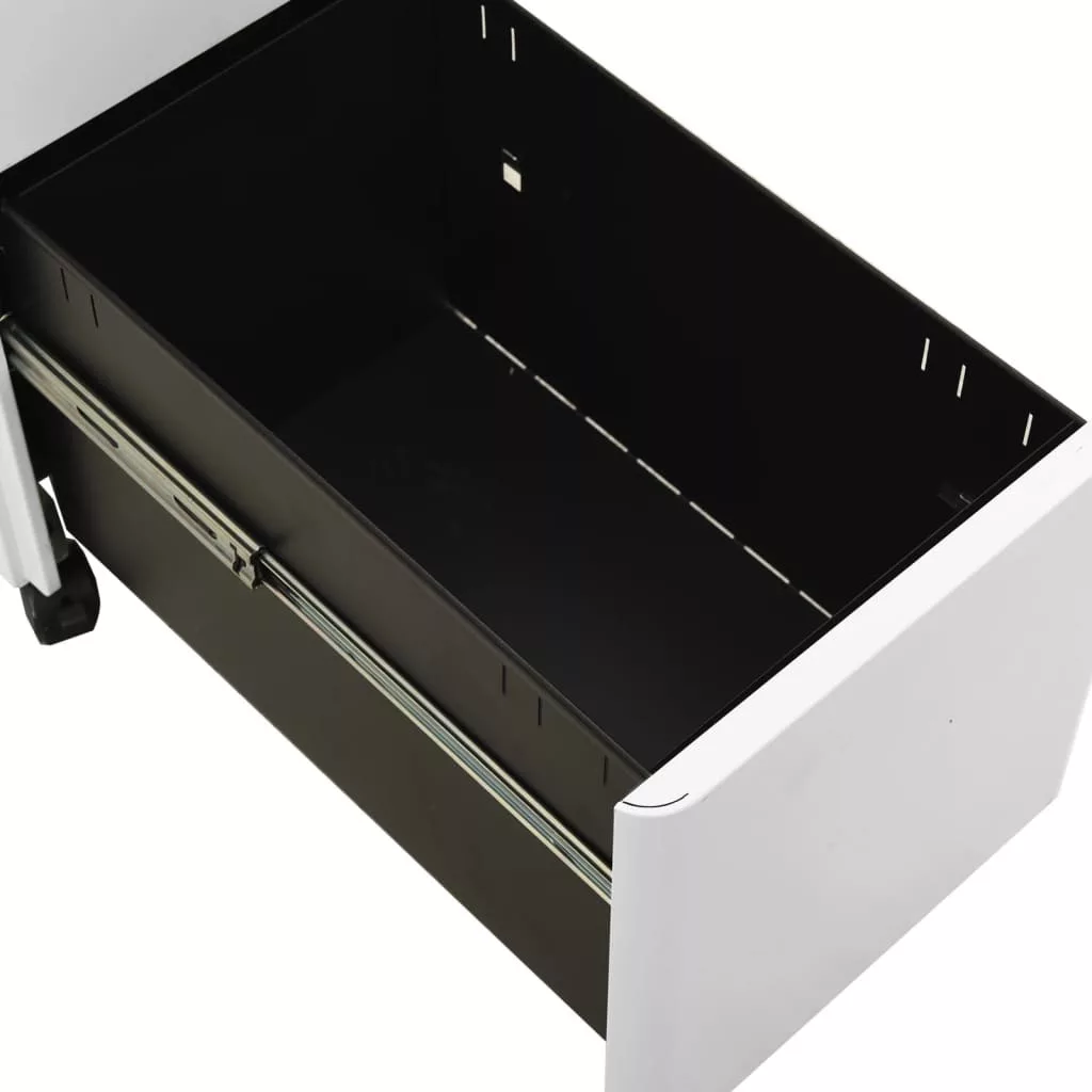 Ez a modern kialakítású mobil irattartó szekrény ideális irattárolásra. Ez az irodai szekrény acélból készült, így tartós és könnyen tisztítható. A 3 fiókkal és 1 zárral ellátott iratszekrényben rendezetten és biztonságban tarthatja iratait. Minden fiók 1 kivehető akasztórúddal van felszerelve, amely szabadon kombinálható levél méretű, legal méretű és A4-es függő iratmappa tárolására. A szekrény egy ceruzatartó tálcával is rendelkezik az asztala rendben tartásához. A 3 részes golyóscsapágyakkal ellátott fiókok zökkenőmentes nyitást és zárást biztosítanak, így még fokozott terhelés mellett is teljesen kihúzhatók. Az iratszekrény jól illeszkedik az íróasztal alá, és ikonikus kialakításának köszönhetően bármilyen irodai dekorációhoz illik.