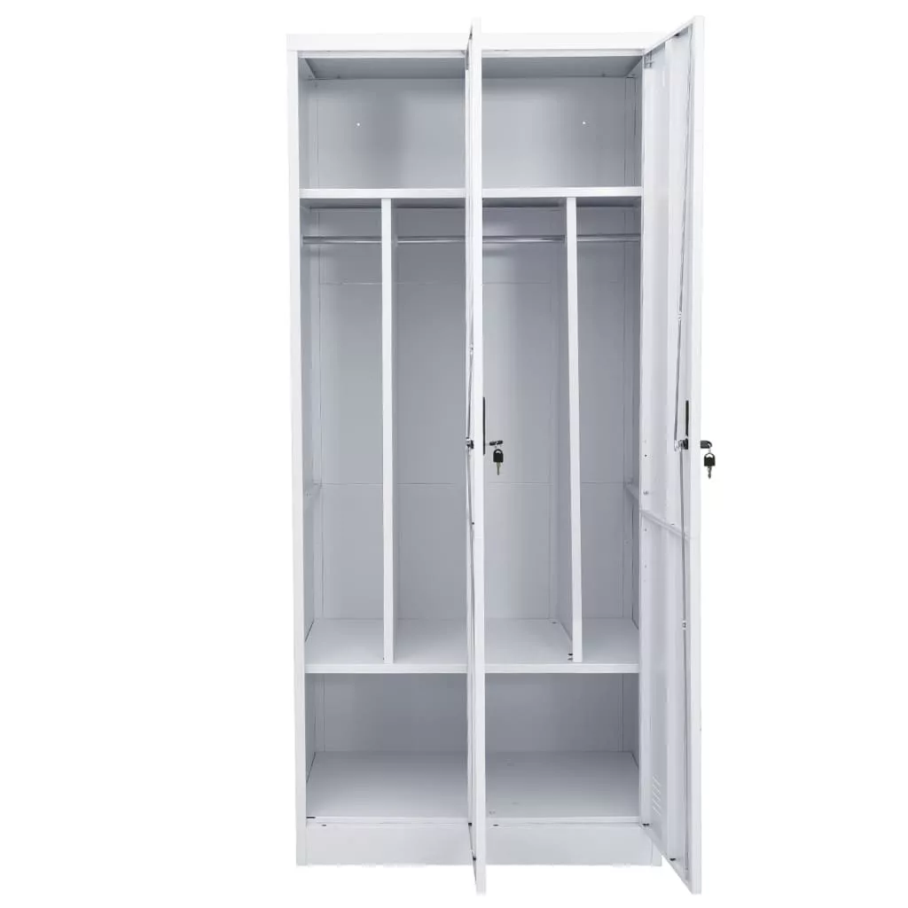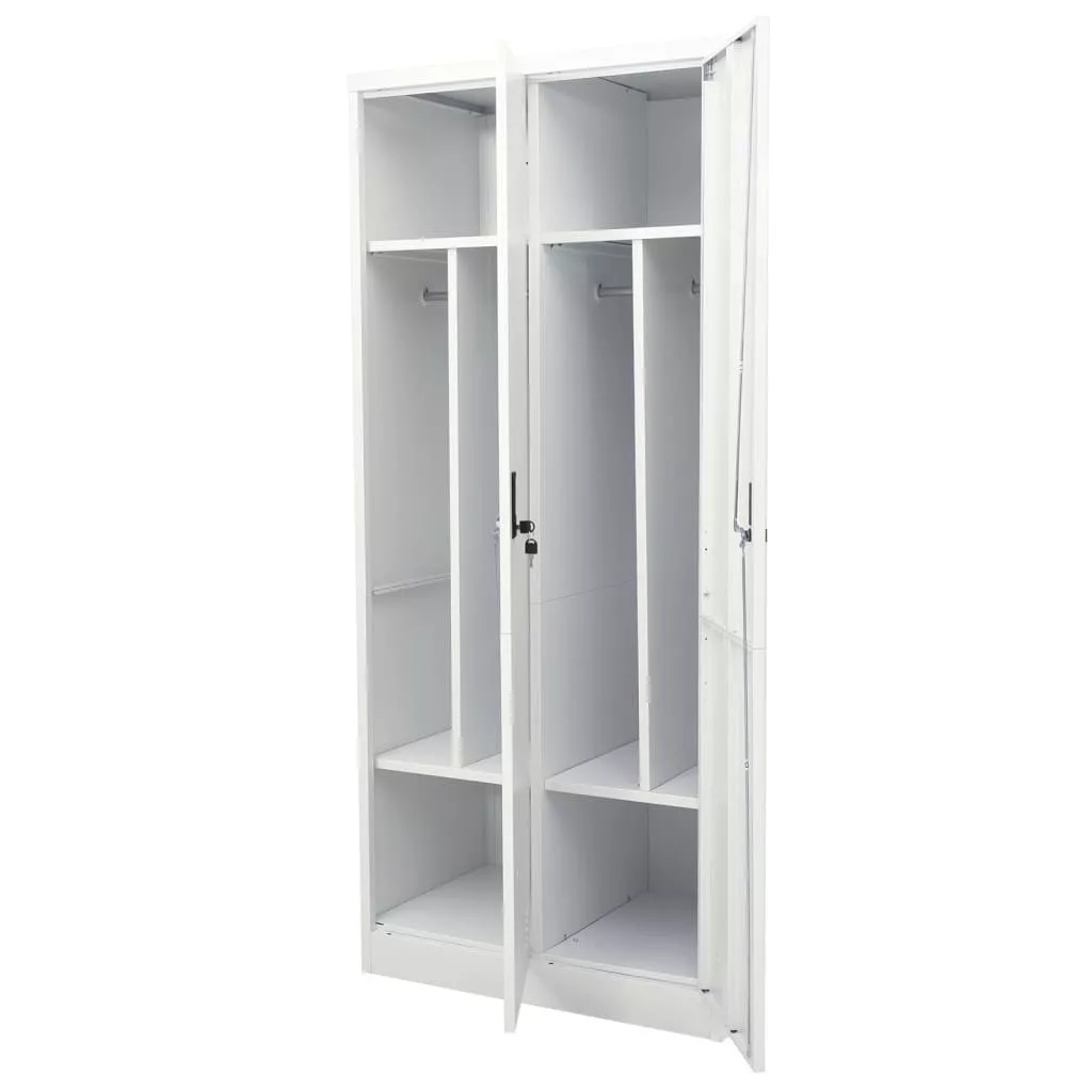 Ebben az acél ruhásszekrényben könnyen elérhető helyen tarthatja ruháit és napi kellékeit. Tökéletes tárolóhelyet kínál, és egy csipetnyi eleganciával ruházza fel meglévő életterét. Ez a szekrény acélból készült, így tartós és könnyen tisztítható. 2 polccal és 2 zárral rendelkezik. A ruhásszekrény nagy rekeszei bőséges tárolóhelyet biztosítanak mind a hosszabb ruhák, mind az egyéb összehajtogatott ruhák vagy kiegészítők, például pulóverek, farmerek, kalapok, kézitáskák stb. számára.
