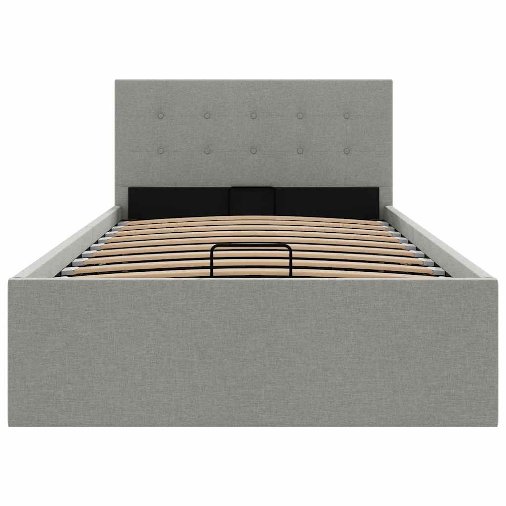 világosszürke szövet ágykeret hidraulikus tárolóval 90 x 200 cm